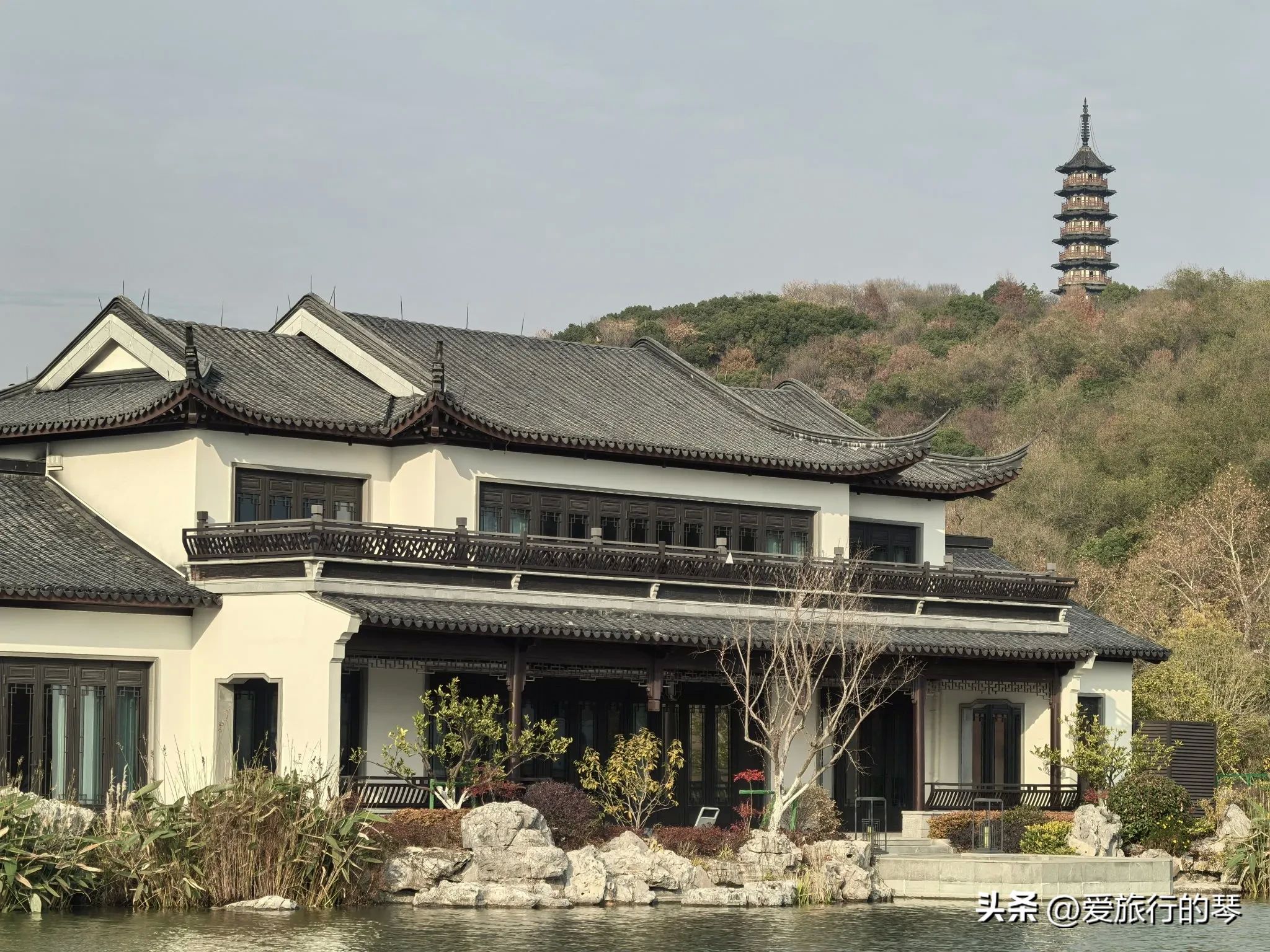 横头街东湖花园 下山到横头街发现的宝藏景点,很漂亮的建筑群,远眺东山及智标塔。还有湖、拱桥等,拍照不错哟[赞][赞]