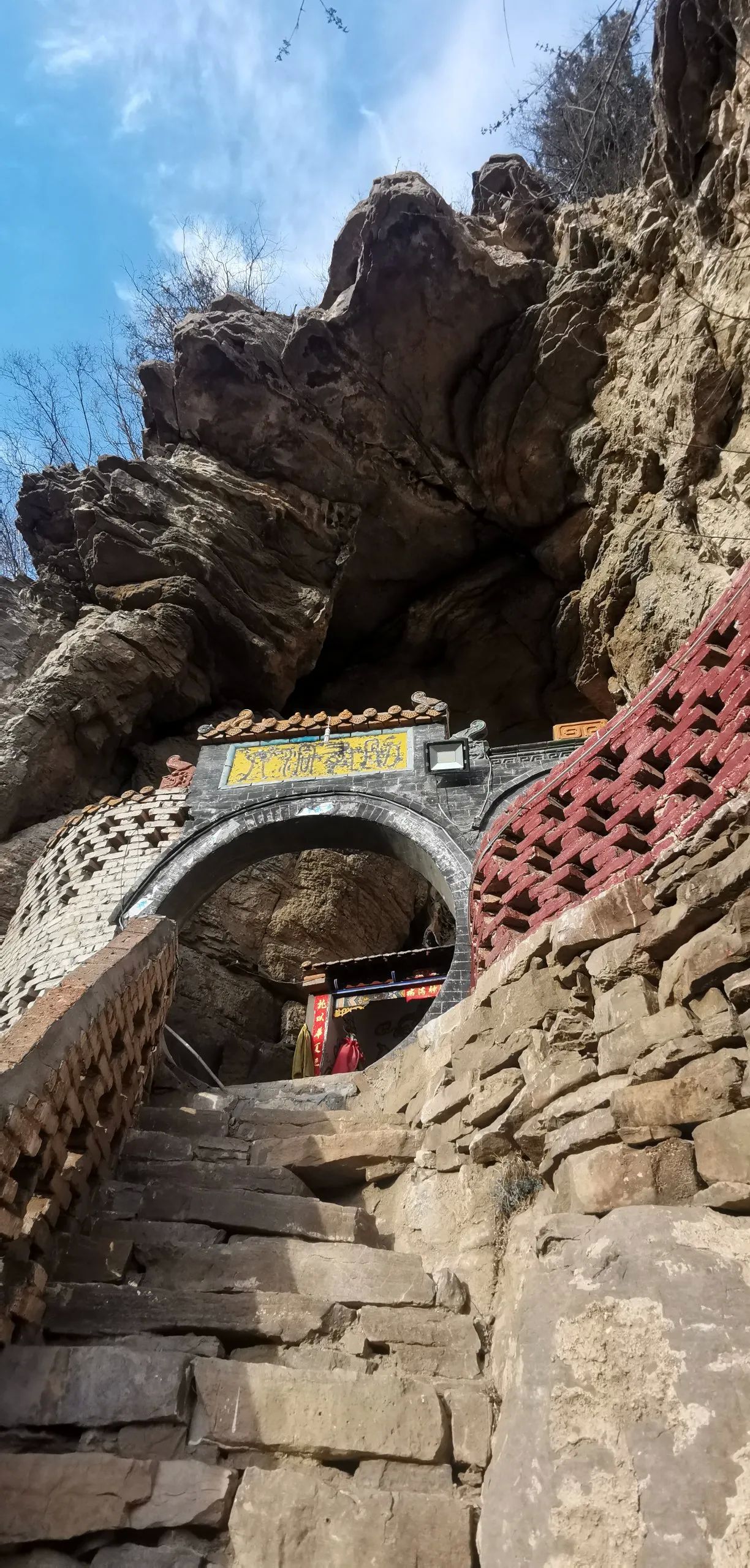 3.一定用高德地图导航天普泽惠,5.3公里12分钟,直接到龙洞沟门口,也就是聚龙山。今天运气,门开着,进去游览了一线天、明万历年的龙王殿、李爷宝殿、攀登崖等,值得推荐。往回返行至大门被锁,喊管理员开锁才知道已经封山,不能进入,所以想去的朋友还是明年五一后来吧。
