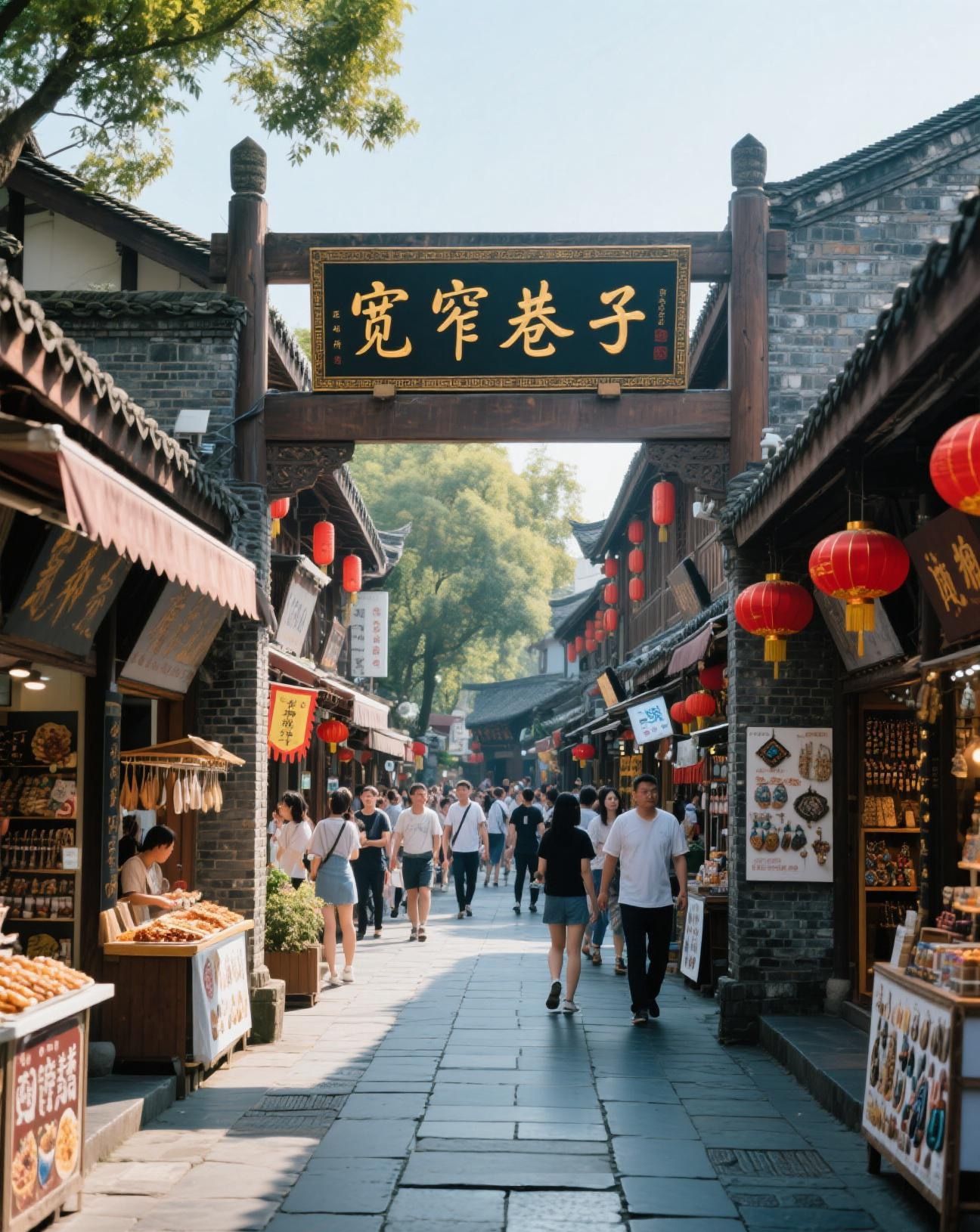 • 下午:前往宽窄巷子,由宽巷子、窄巷子、井巷子三条平行排列的清朝川西古街道共同组成,在这里能体验到成都原滋原味的休闲生活方式,欣赏恺庐、德门仁里、拴马石等特色景点。可在武侯祠大街中站乘坐公交 57 路 / 109 路,到商业街口站下车,步行 900 米左右到达。宽窄巷子全天开放。游玩途中,不妨试试甜水面,面条粗如筷子,口感筋道有嚼劲,配上特制的甜酱油、红油辣椒等调料,甜中带辣,辣而不燥。还有糖油果子,色泽黄亮,外酥里糯,香甜可口,一口咬下去,甜蜜的味道在口中散开。