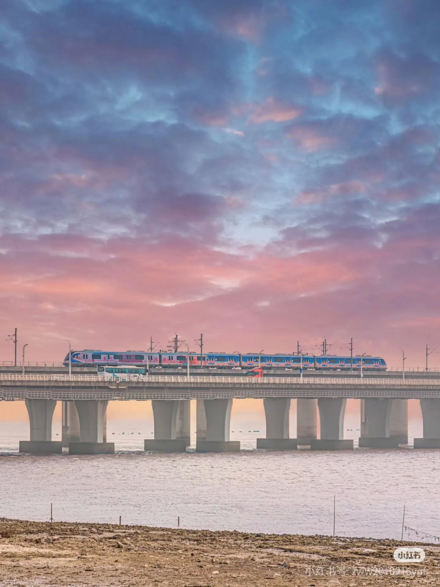 导航“花岗大桥”即可直达这片宝藏之地。彩虹堤坝搭配白色风车,满满的文艺气息,随手一拍都是大片。