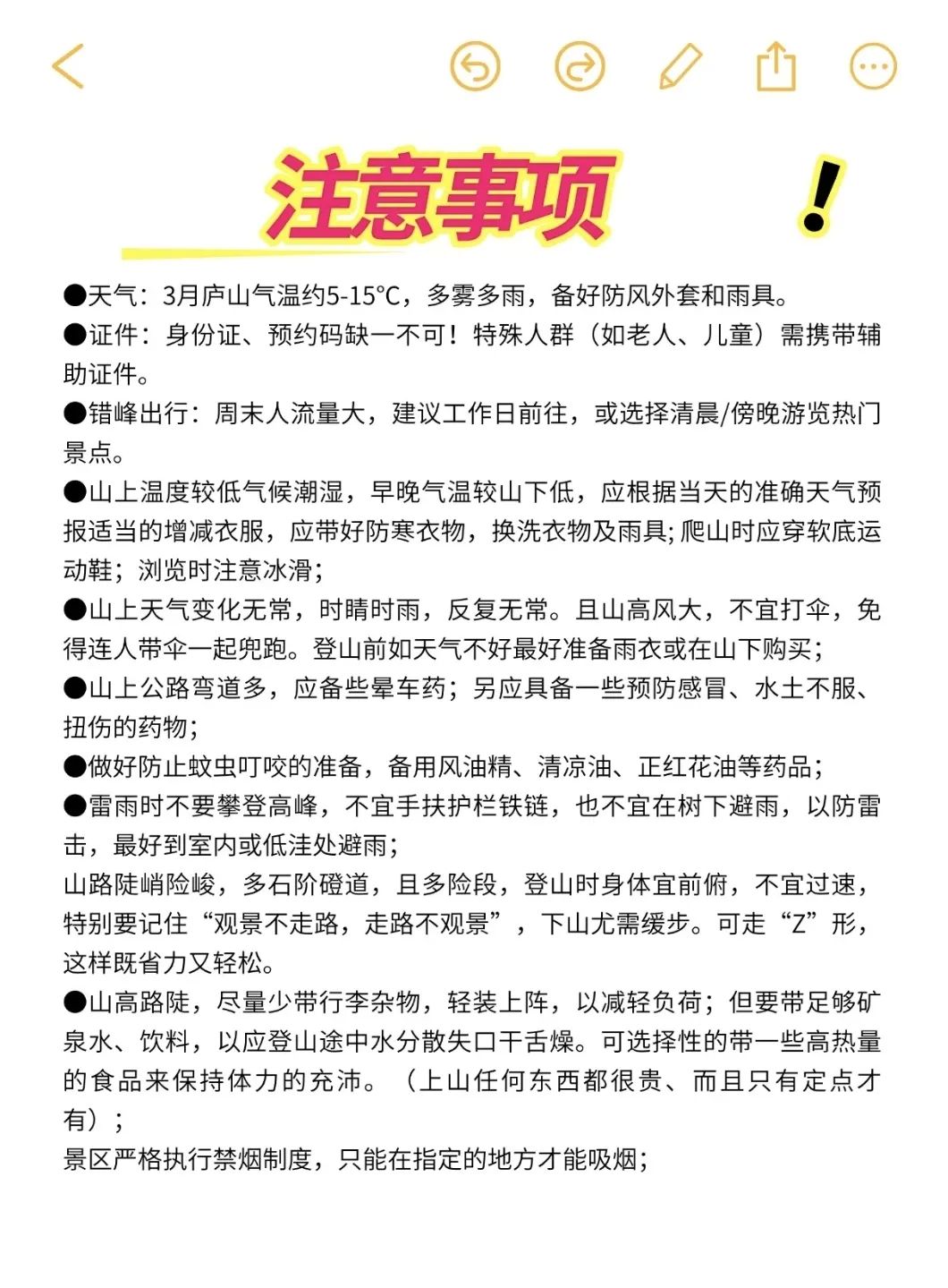 **标题:3月免门票!庐山超全省钱攻略人均300+玩转诗画仙境