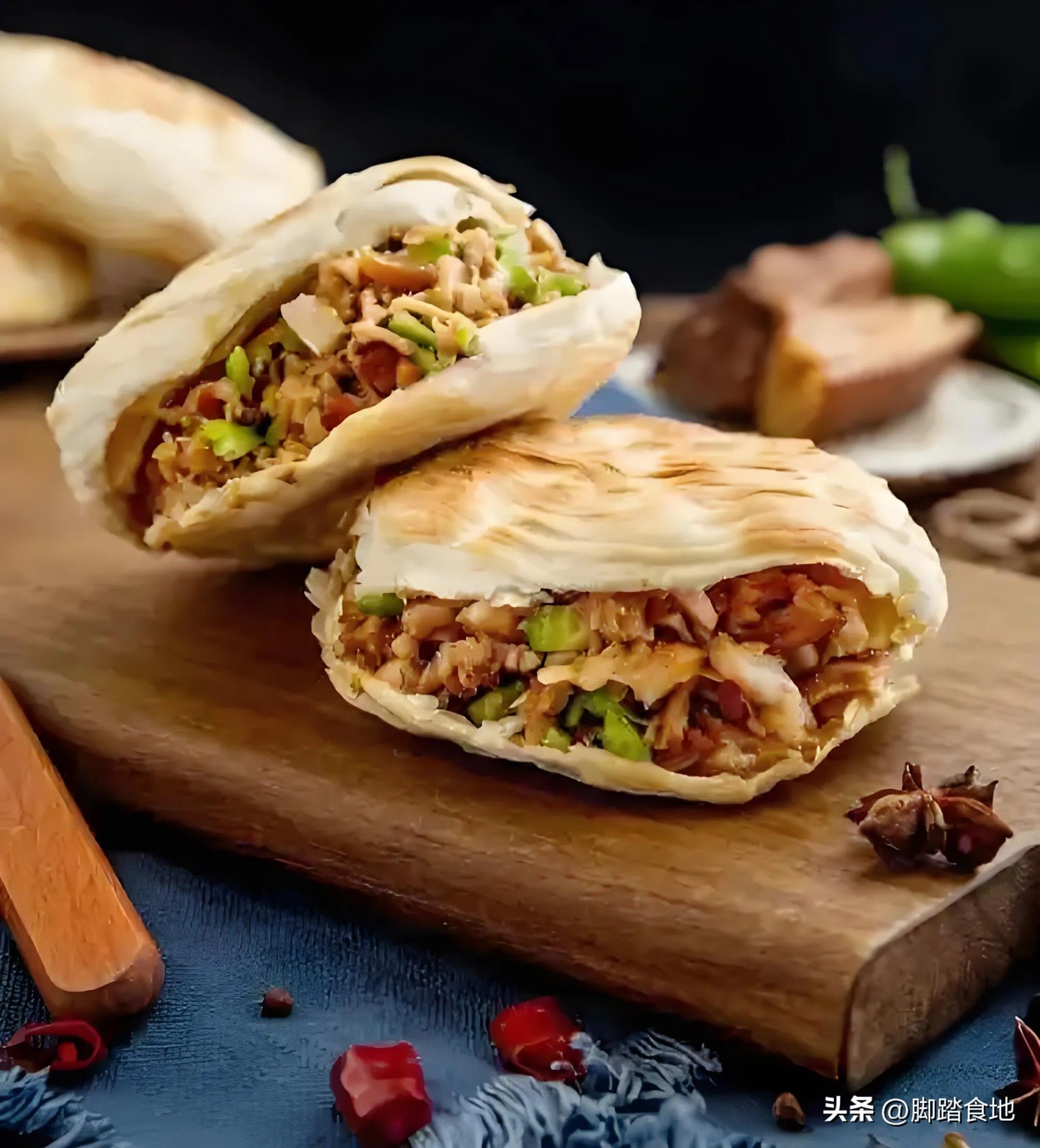 - 肉夹馍:杨天玉腊牛羊肉夹馍,馍酥肉烂,汁水四溢。