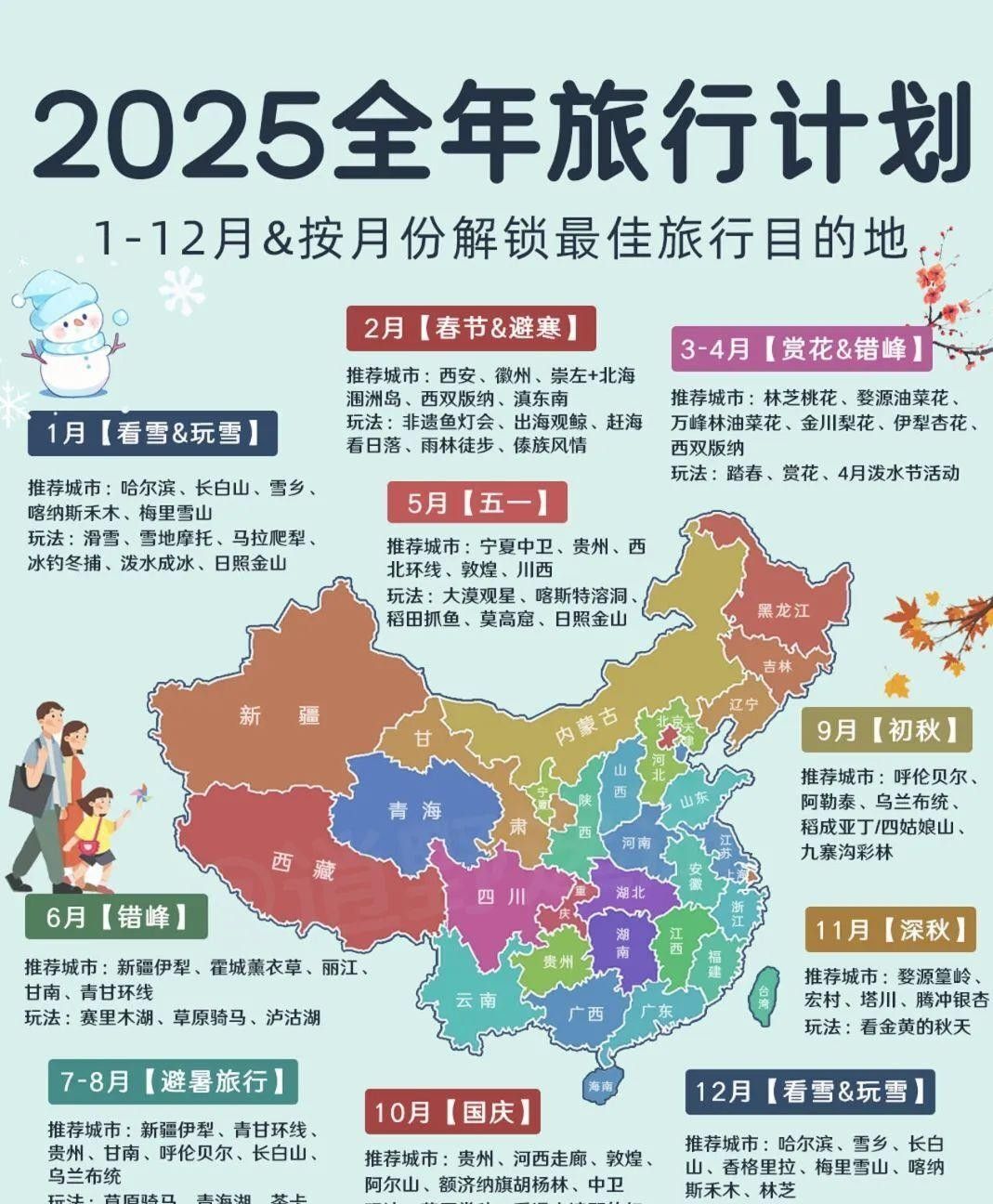 个人觉得这表最大的亮点是季节卡得准,比如三亚冬天去、内蒙夏天冲,直接避开人挤人。但有些地方像川西、西藏,海拔高容易高反,得提前备药,别光顾着拍照!