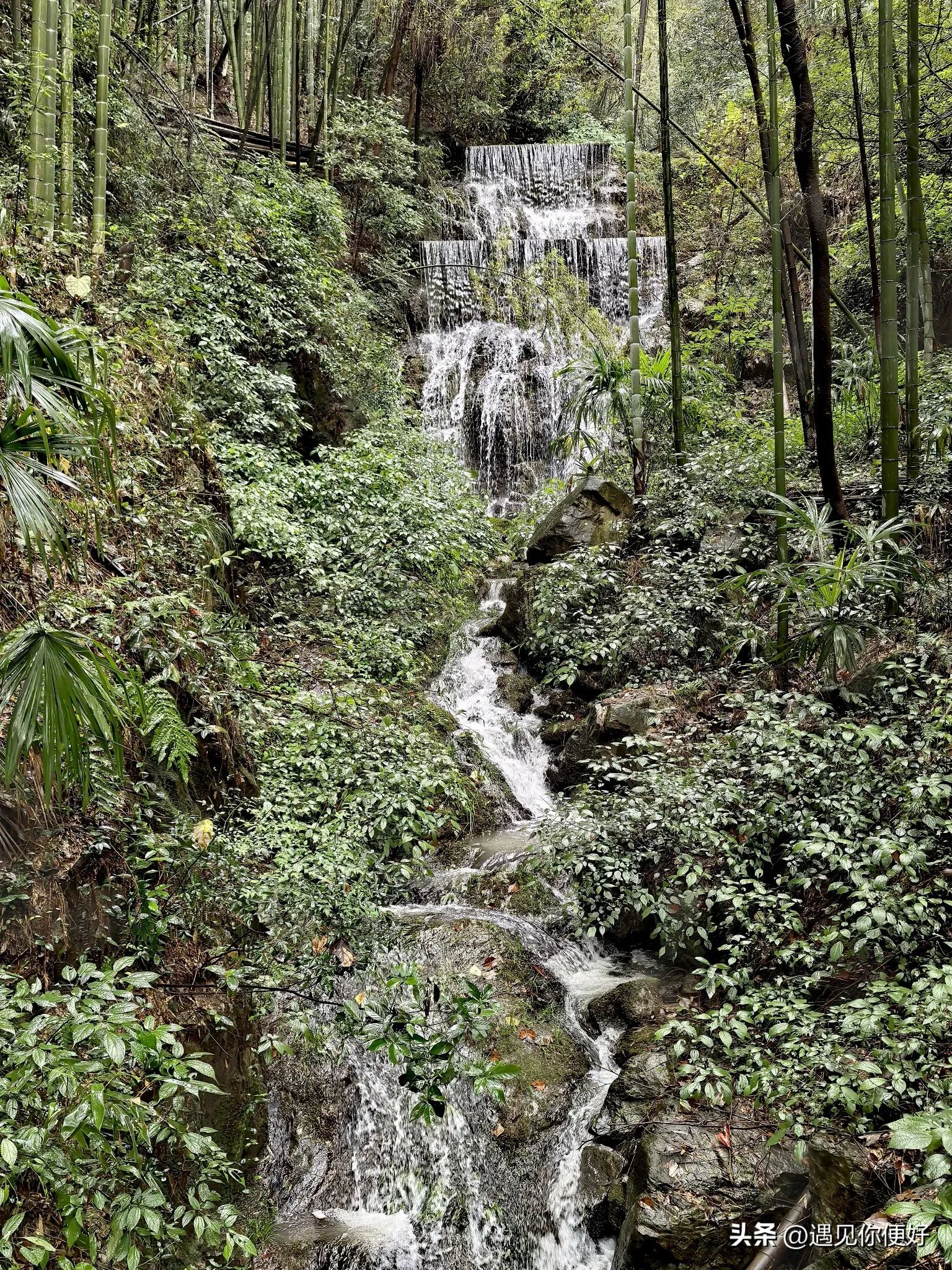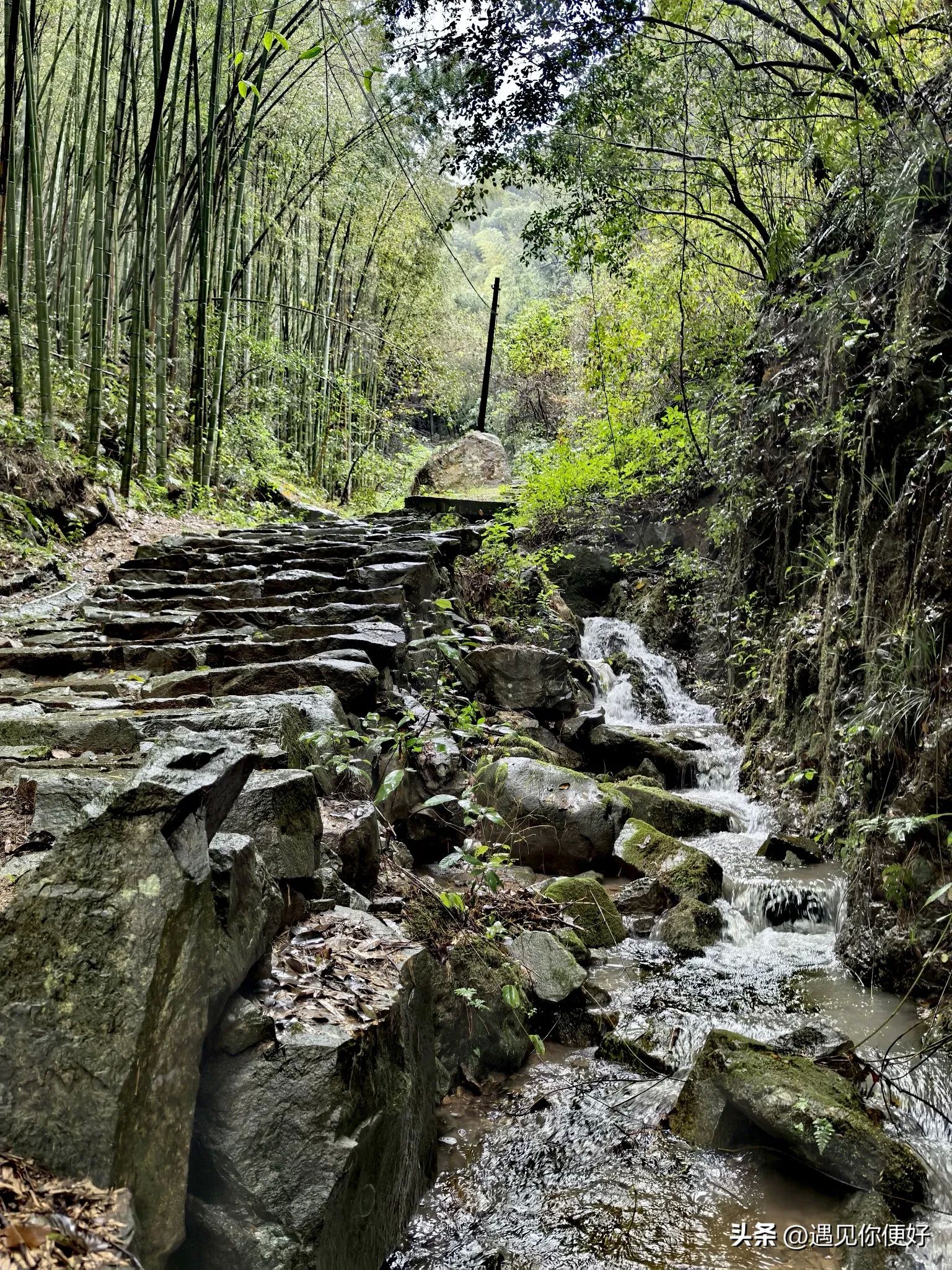 太哇塞了!后悔现在才来,实在难得的一条徒步登山好线路,沿途始终山水相陪,泉水叮咚,溪流潺潺,还有壮美的瀑布群和一眼望三江的望江阁,不失为杭州城区附近休闲健身徒步看景的绝美好胜地之一。这条线路就是位于杭州萧山义桥的云岭古道大环线,全程约8.46公里。今天,星期日,尽管阴雨天,但自己还是按捺不住想出去户外运动一下的冲劲,按照前几天从网络上看到的自己之前却从没走过的云岭古道线路,自驾导航啧享云岭山庄。山庄门口有免费停车位。停好车往前直走几步,就能看见云岭古道的标识牌,一直沿台阶往上爬,到了滴水石瀑布有一处观景平台,可拍照打卡,很漂亮。然后穿过尽头的盘山公路,继续直行往上爬,到了萧山与富阳之间的交界处富阳渔山乡林峰绿道。直行往村庄里面走,一直走到右手边茶园有台阶就上去,再穿越宽敞的盘山公路到对面,沿“时五临小院”右边的土路上行穿越茶园,直行到去寺坞岭的盘山公路。寺坞岭望江阁打卡后沿盘山公路往下走几步右拐往下穿越竹林,就能看见往北坞村方向走的指示牌。抵达北坞村往林峰村继续走,就能返回到云岭山庄停车处。云岭古道大环线一圈徒步下来,所需时间4个多小时,体验感实在叫好、超赞!山水悠悠陪我独行,漫步翠竹松柏与高山茶园间,云雾缭绕,凉风习习,呼吸的是新鲜空气,耳闻的是溪流潺潺,幽静而清欢,与自然双向奔赴。如果天晴,时间允许,还可以顺道再跑一跑萧山天路。又是活力满满、悠闲自得的一天。