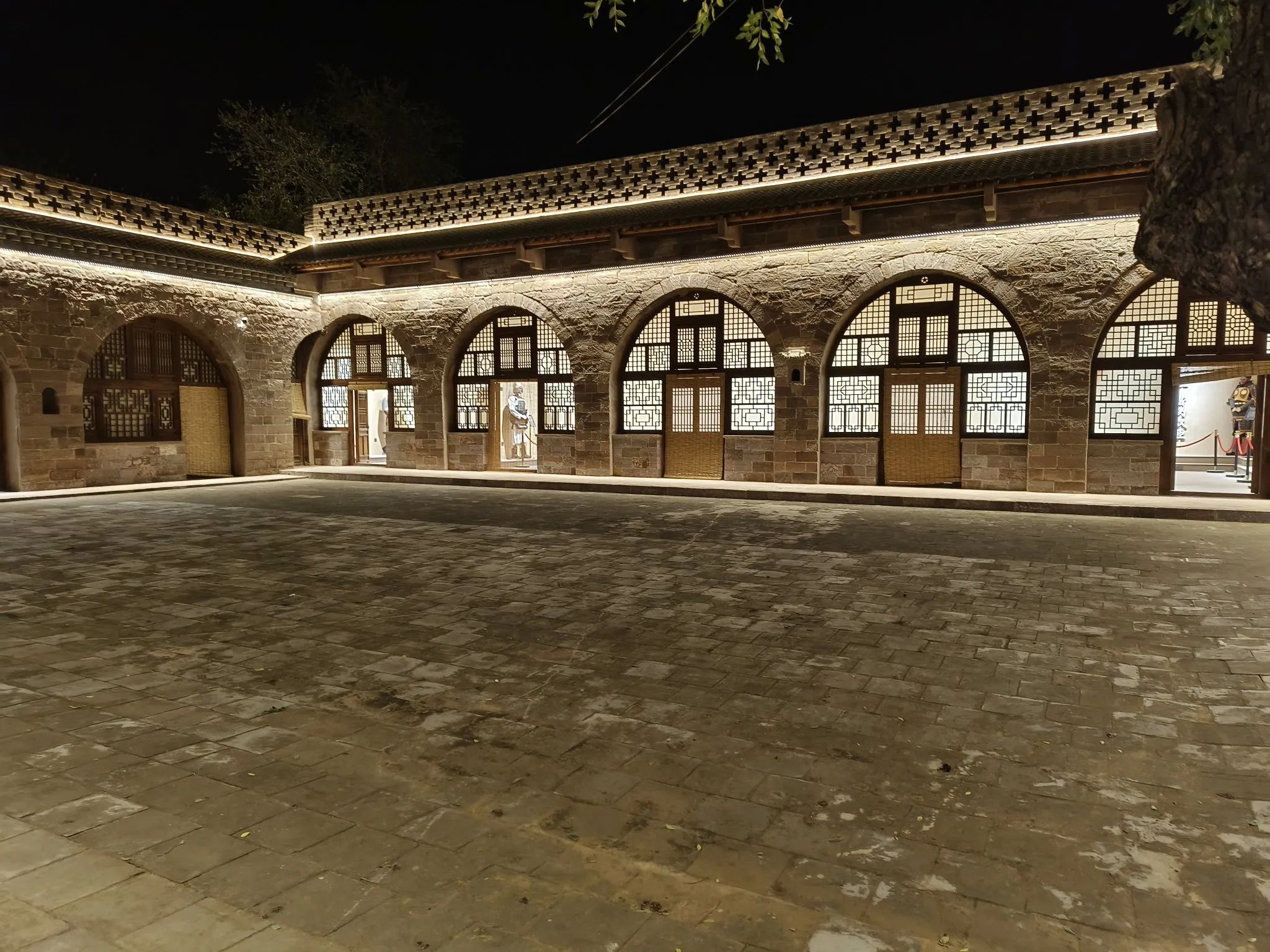 这时天已经黑了,我们走马观花边走边看,穿过黄河大道,来到石城下,不顾天黑天冷仍执拗地上山游览石城。石城是古时的军事要塞,明清时还是县衙和县城所在地,四周悬崖绝壁,紧临黄河,也是易守难攻。城里房屋都是石头砌成的窑洞,十分的坚固耐用,据说已有上千年的历史了,墙上图片显示维修前是残垣断壁,维修后就成了景观名城了。石城下是正在建设的游客中心,据说投资了一两个亿,难怪不让车进。当我提出敌人围困时该怎么办?说是还有几条可以撤退的后山路线。看来强龙不压地头蛇啊!上山容易下山难,从石头城下来膝盖疼得要命。