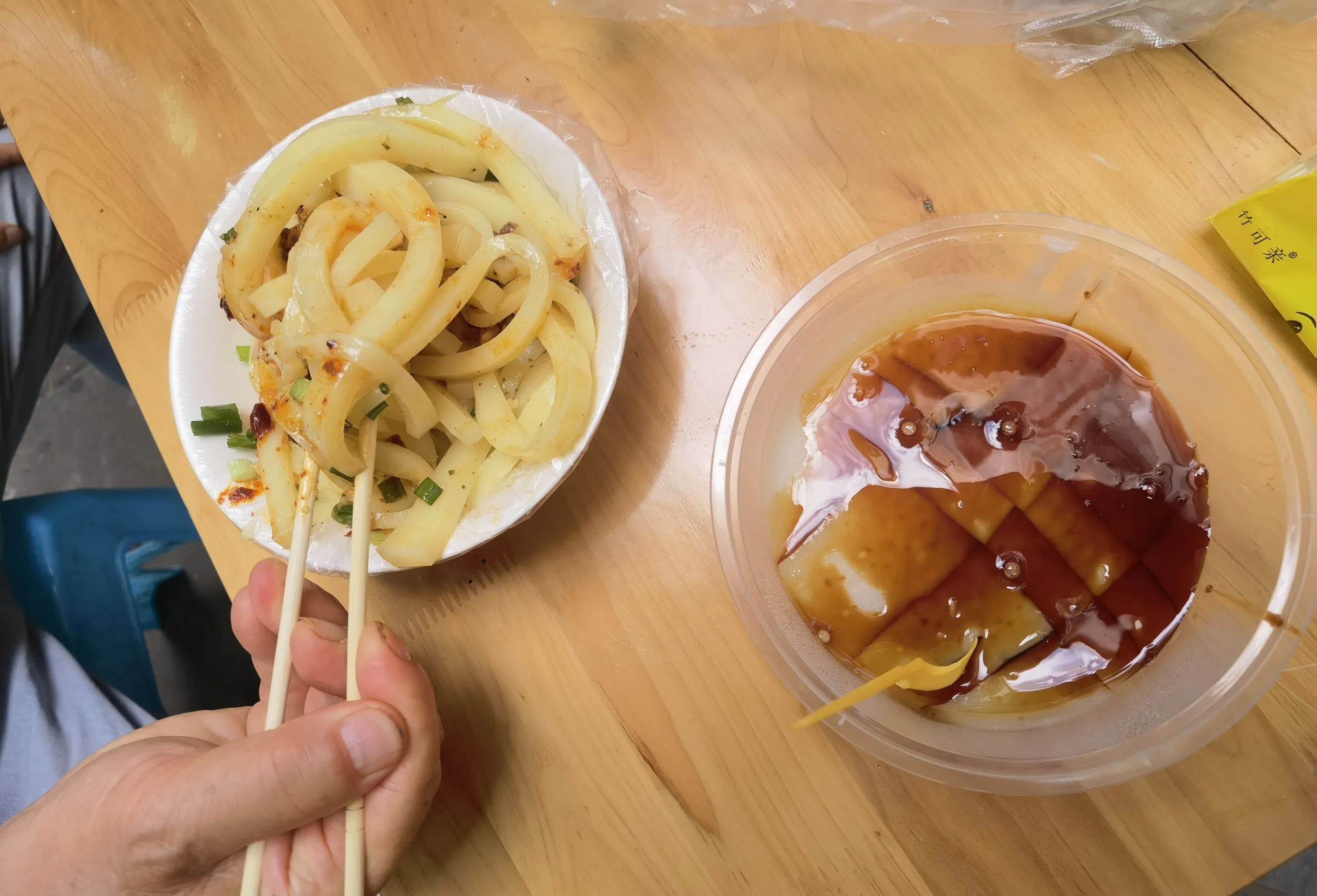 2. **黄凉粉**:莲花广场“罗记黄凉粉”淋糊辣椒,酸辣爽滑,5元一碗,老板娘坚持不涨价。