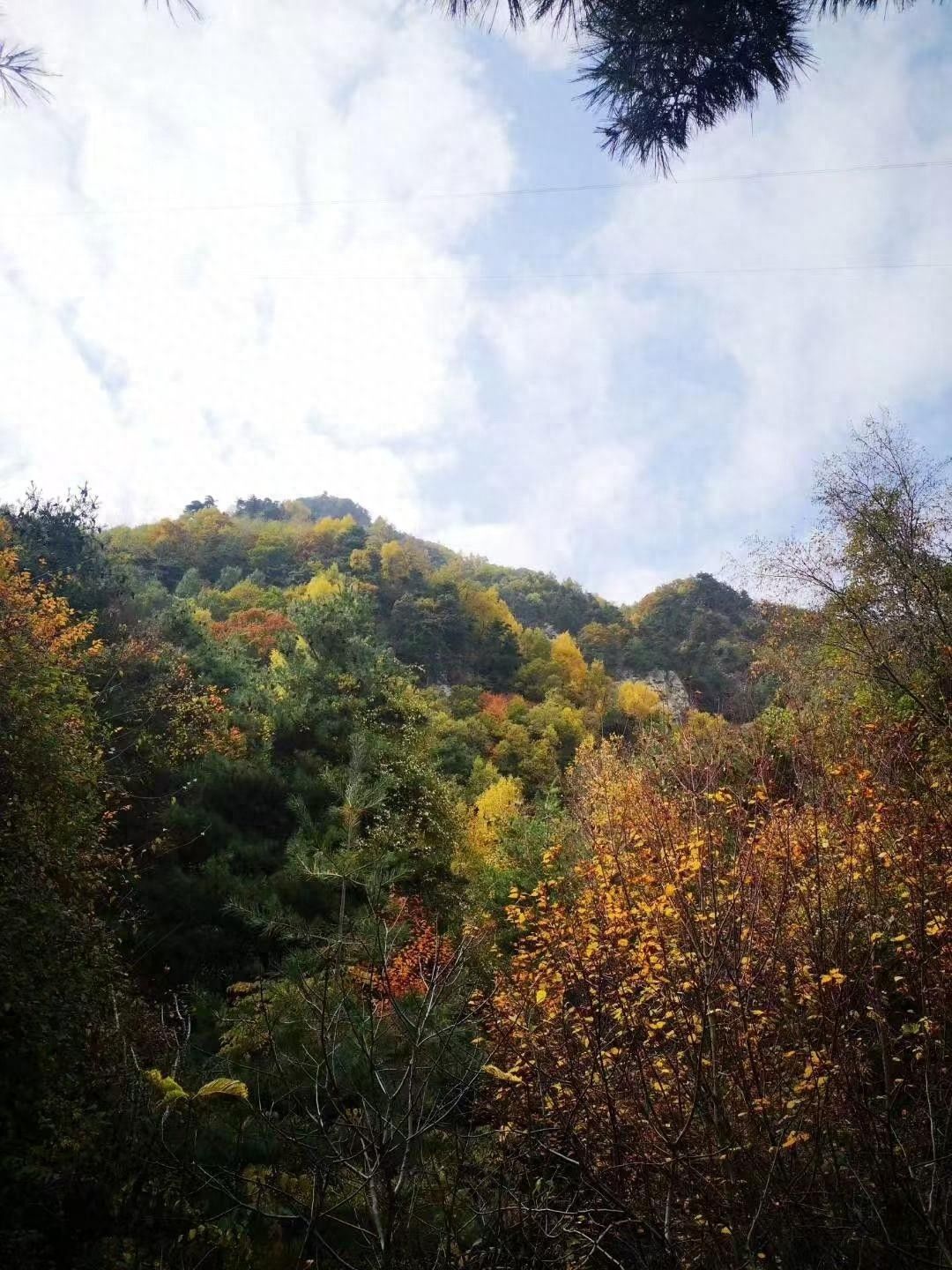 欣赏着一路的风光,不一会就到了山脚下,接下来的山路只能攀登而上了。山路由木板铺就而成,呈阶梯式,从山下延伸到山顶。山路周围是原始丛林,各种各样的树木在这里自由生长,我们能够认出的有松柏、榆树、枫树、桦树。充沛的雨水和适宜的气候,使它们枝繁叶茂,挺拔葱郁。此时枫树的叶子换上了红色盛装,杨树的叶子套上了黄色霓裳, 这里已经染上了秋天的颜色。 住在附近的当地人,将自家种植的东西摆到木板路上叫卖,一声声叫喊,让宁静的丛林变得生动起来。因为山高路陡,山脚下有供游客骑的骡马走在另一条山路上,牵着骡马的村民,和骑在骡马背上的游客说说笑笑,成为山道林间一道风景线。