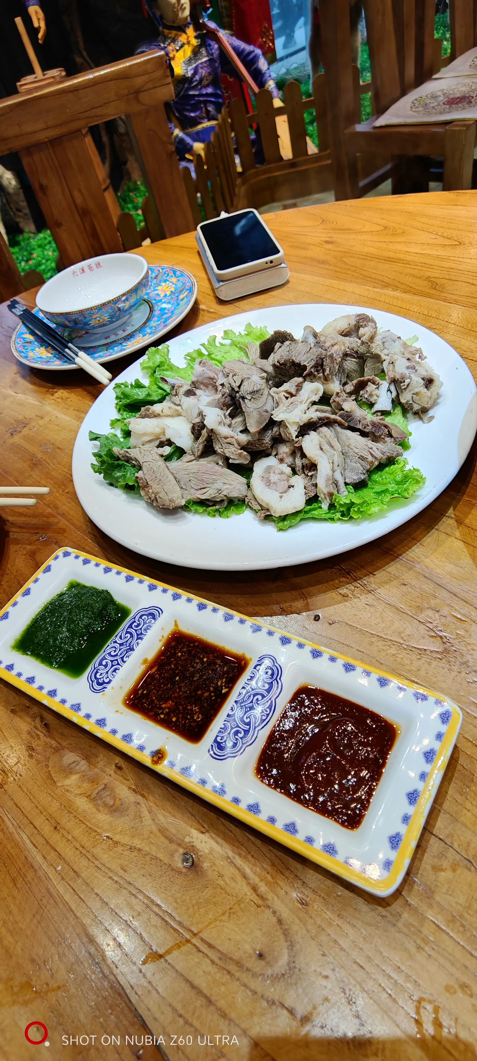第一天从北京出发到赤峰翁牛特旗,有个玉龙沙湖。但是我们没玩,门票加项目估算一千多,于是找了个旁边的呼和布日墩旅游合作社。玩了半天沙子。确实玩的不如玉龙,但是没门票,骑骆驼,玩沙滩摩托都便宜。晚上住的翁旗城里,民宿有都是还便宜。吃的大漠苍狼饭馆,喜欢大块吃肉的推荐,量大味美不贵!