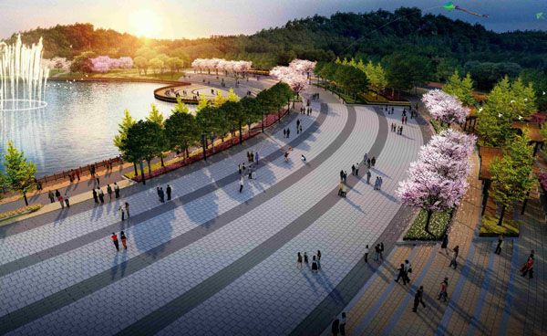 “这个景点不仅可看作是一个山、水、景、活动共融的空间,还可当作一个最佳的露天剧场。这里可供中型活动参演,核心观众区能容纳1500人,达到了中等音乐厅要求。”相关负责人说,“留心观看整个剧场,大家可以发现,我们采用的是古罗马露天剧场扇形平面布局形式,这样可以保障观众最佳的视听感受。因为剧场是依山而建,后面的山体完全可以作为它的一个天然屏障,所以后期我们还会有一个优化植物的打造。”