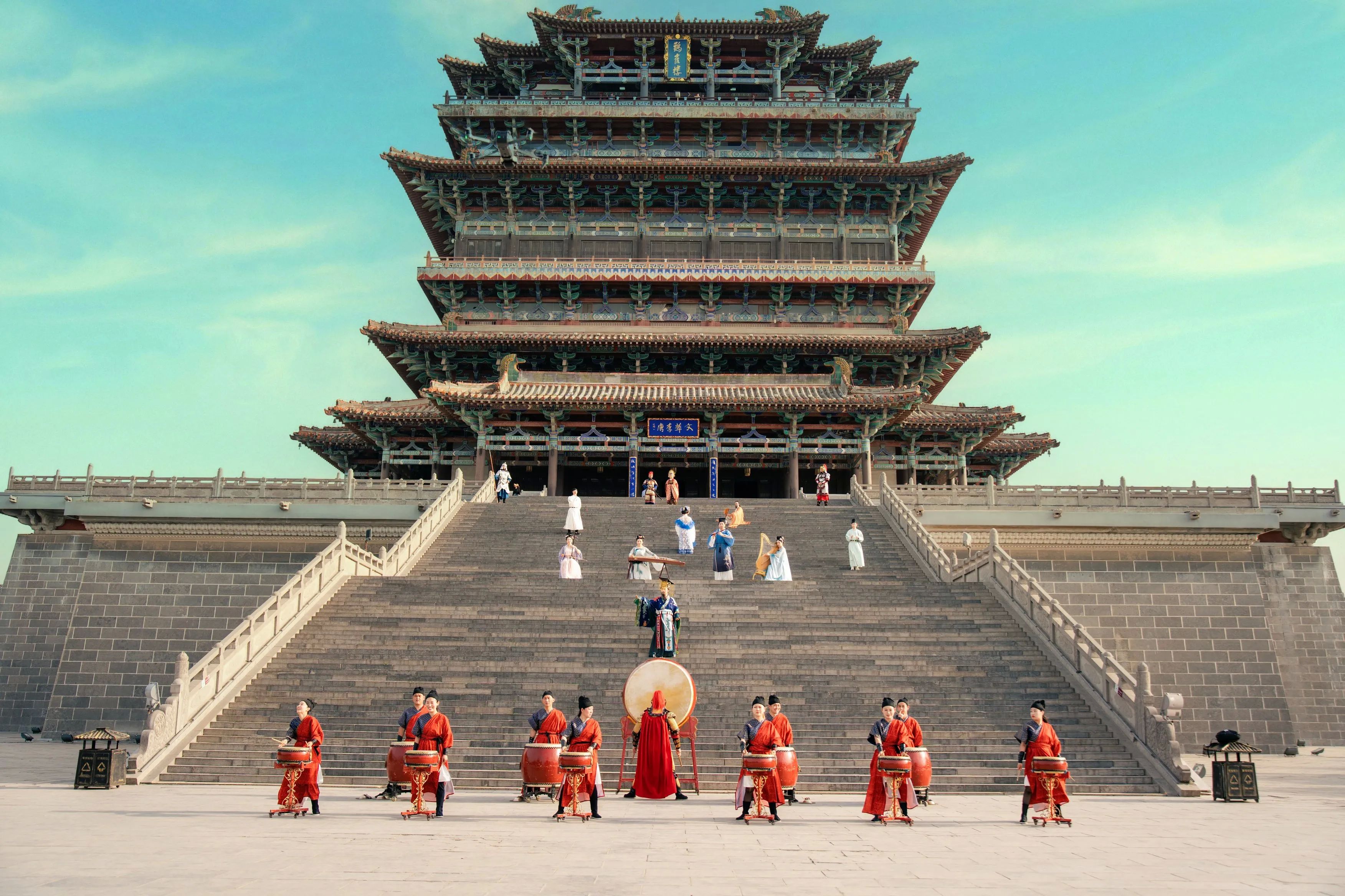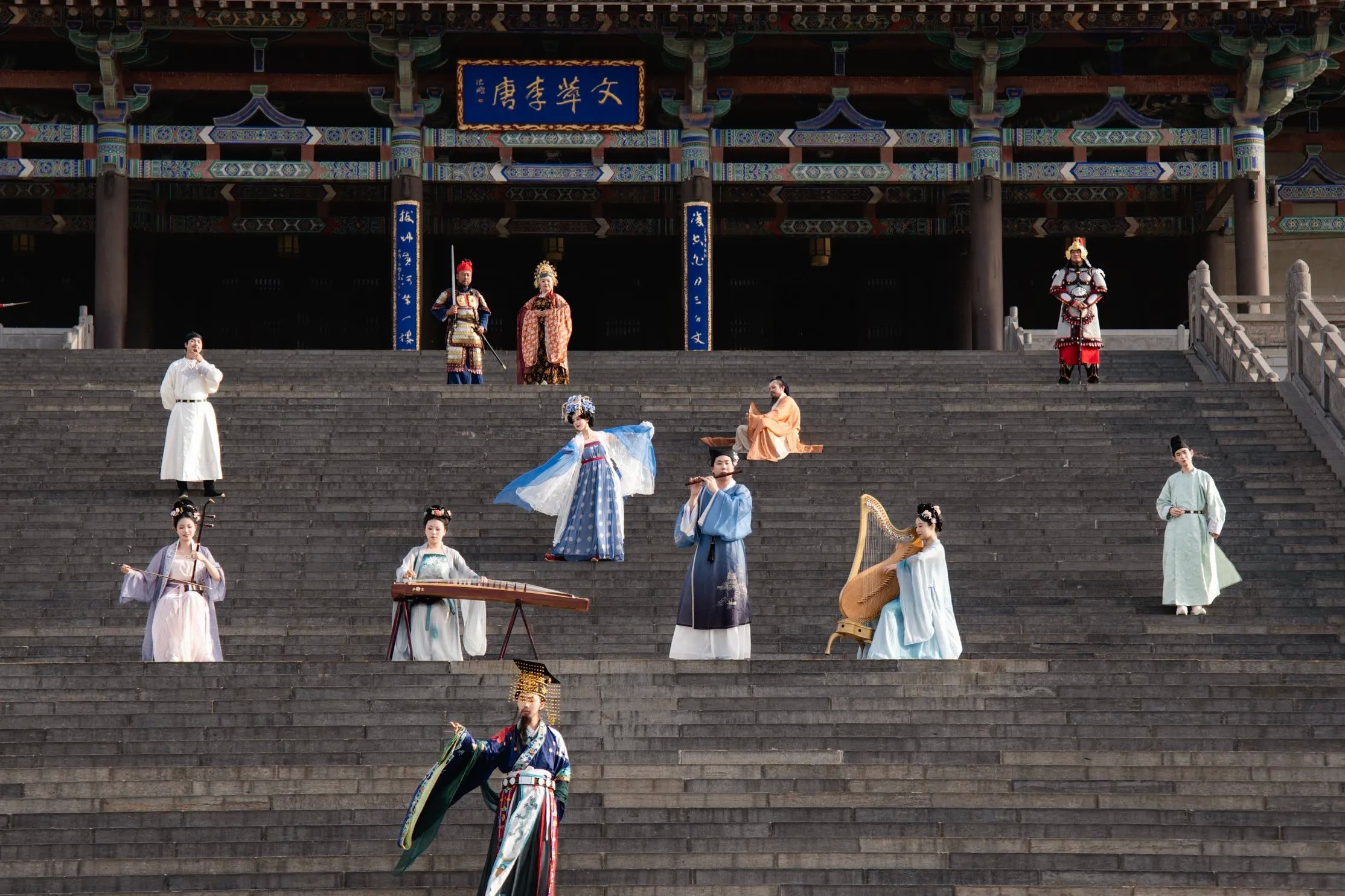 踏入山西运城永济市鹳雀楼,仿佛被卷入一场穿越时空的奇妙旅程。盛唐广场的表演就像被历史赋予了灵魂,看绛州鼓乐的鼓手们激情四溢地敲击,磅礴的鼓点在空气中炸裂。