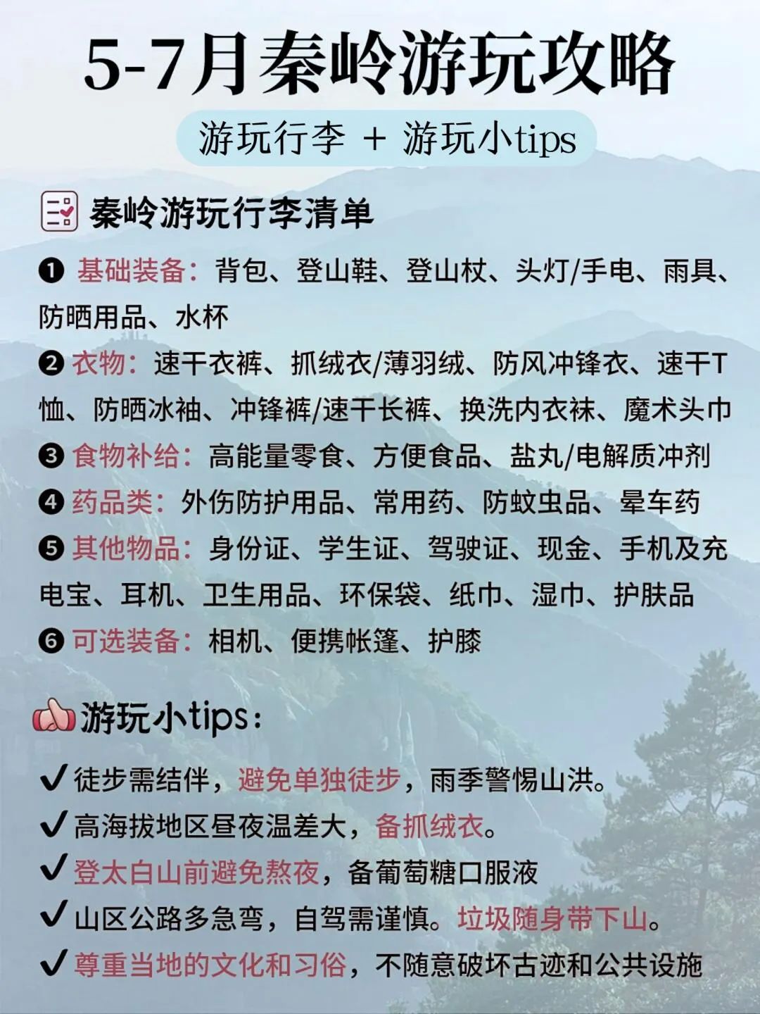 自驾:早6-7点出发避拥堵,导航设“秦岭分水岭”可串联多个景点