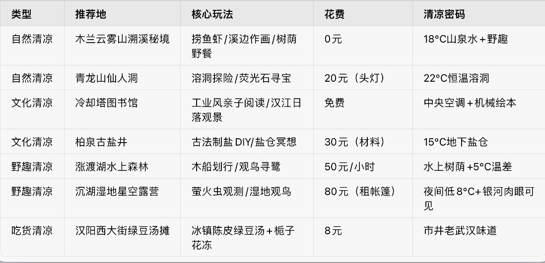以下是武汉暑假带娃避暑的小众宝藏地推荐,主打清凉、人少、低消费