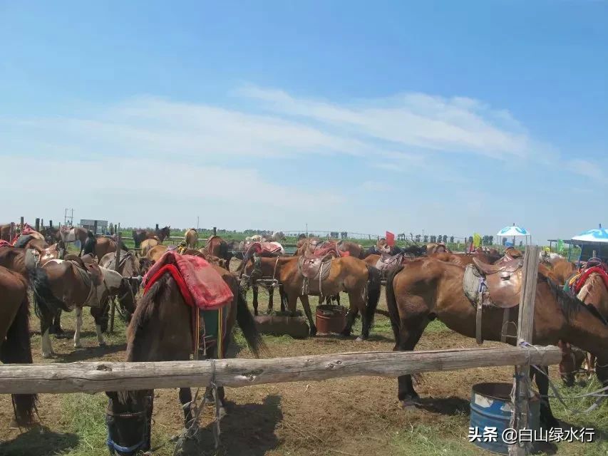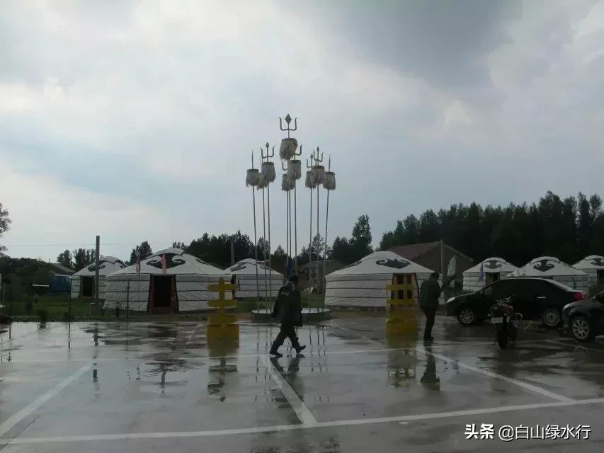 珠日河草原旅游区位于科尔沁草原腹地,占地6000亩,建筑突出蒙古族特色,通辽市一年一度的8.18日赛马节,也就是那达慕大会在这里举办,参加人数有十万之众。到了景区我们先安顿好在蒙古包住宿,然后去游玩。我们到达了那达慕举办地,这里只有每年搞活动时候才对外开放,场地空空如也,大门紧锁,只有银色的看台在阳光下熠熠生辉。不远处有个骑马场,每匹马都对外出租任尔骑行,价格80元。所谓的草原,只有稀稀拉拉才几寸高的小草,夹杂着一些黄蒿子,还不如高速两侧见到的草原。课文中“风吹草低见牛羊”的景致没有看到,是这次出行的最大遗憾,除此之外,再也没有其它可供观赏和娱乐的地方。原定晚上在这里居住蒙古包,我建议当天赶回白山,免得住一夜还得忍受粪虫叮咬,得到了大家的一至同意。到了住宿地,每个200元的蒙古包房间给退了100元,4个间退了400元,外加晚餐费,总共给退了800元。下午一点钟,我们比计划提前30分钟离开珠日河草原,驱车20分钟来到珠日河镇吃午餐。饭店叫汤臣一品酒店,正赶上有个蒙古人家为孩子办升学宴,好多客人都说蒙语,我好奇的瞄了下礼单,大多数礼金都是500元,少数是200元,比白山礼大.看来草原居民不差钱。这顿饭吃的很可口,菜的味道不错,尤其是蒸的小馒头超好吃,我们桌上个女伴又要了一盘馒头带到车上。