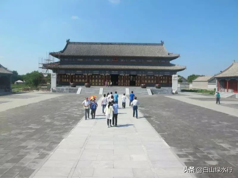 午餐后,我们奔下个旅游点,3点钟我们到达孝庄园,也就是达尔罕王府,它位于科左中旗花图古拉镇境内,是以清代国母孝庄文皇后出生地为主题的大型历史人文景区,景区占地一万亩,有孝庄纪念馆,嘎达梅林纪念馆,达尔罕敖包等十几个景点组成,门票50元,当天游客稀少,无喧闹的情景。可惜的是,这里的清代古建筑文革时期都被付之一炬,现在看到的建筑是通辽市投资10亿元复建的,工程浩大,目前尚未完工,只有门前的两头狮子是当年的,它见证着这里经历过的沧桑变化和辛酸。我们在孝庄园游玩了一个小时,部分景点有讲解员解说。孝庄园建设有着清代建筑的韵味,但由于是复制品,所以总觉得缺少了些历史文化的积淀和厚重感。我们在孝庄园游览了一个小时,下午5时,在导游小李的推荐下,我们来到了通辽市内一家民企禾谷园,这里是一个大超市,经销着内蒙古白酒、奶制品、牛肉干、刀具、皮包等物品。大家下车购买了一部分纪念品带回白山,导游小李也拿到他的5%提成。晚5.30分我们在通辽市内把车加满油,告别了导游小李,沿着宽广的通辽市大街直奔沈阳方向的高速一路前行,两位司机师傅轮流开车,经过9个小时的长途奔波,凌晨2.30分在半梦半醒中我们到达了白山。