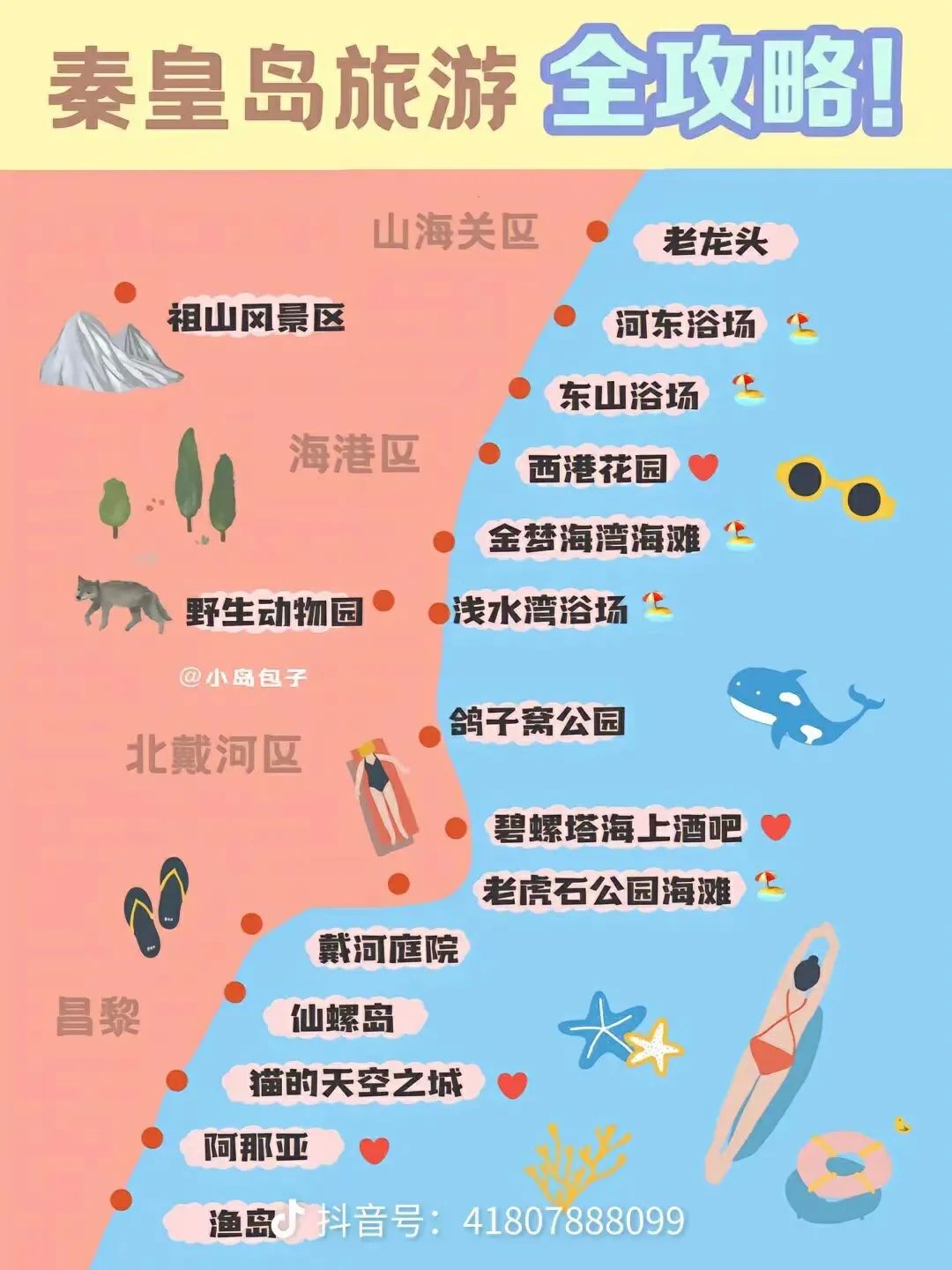 第一天路线: 蔚蓝海岸(免费)-猫的天空之城(免费)-午饭-戴河庭院休闲海滩(免费)或者仙螺岛-午餐秦皇小巷晚饭