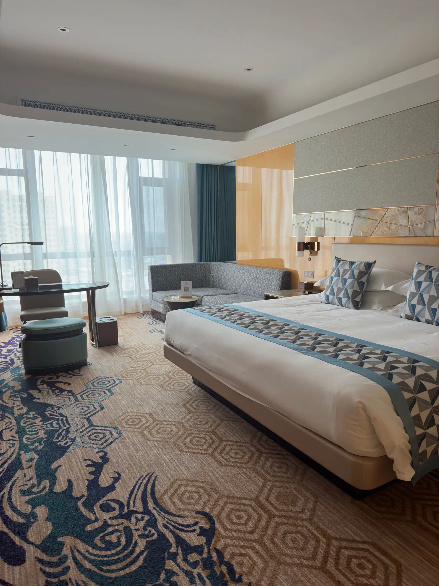 车到酒店。旅行社工作人员在酒店大堂等我,互相确定了权力义务。我这边需要注意安全、听从导游安排,有问题及时沟通;旅行社确保全程无购物、无强制消费。签了合同、交了钱,入住房间。好家伙,这酒店房间真大!床两米、卫生间也气派。第一印象还不错。