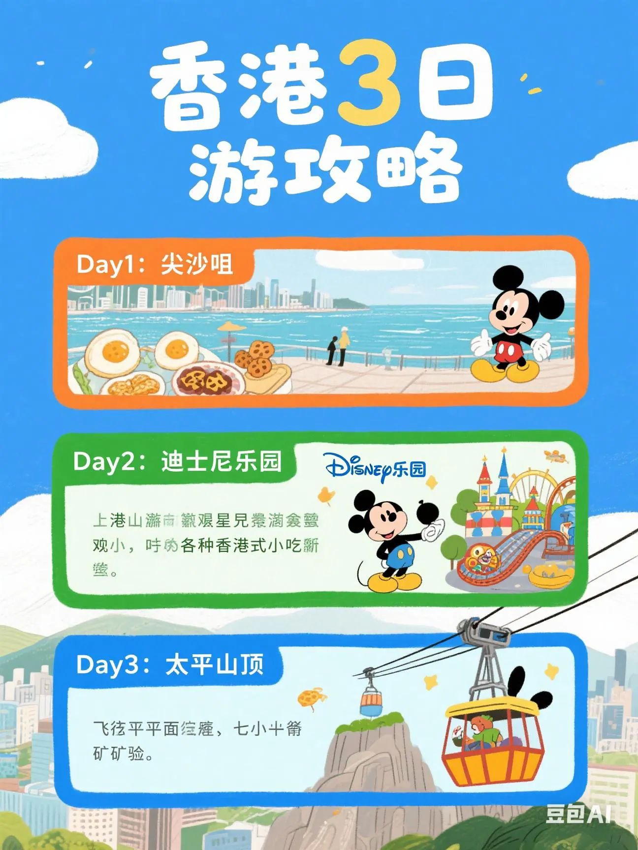 以下是一份详细的香港3日游攻略,涵盖经典景点、美食和购物,适合初次到访的游客: