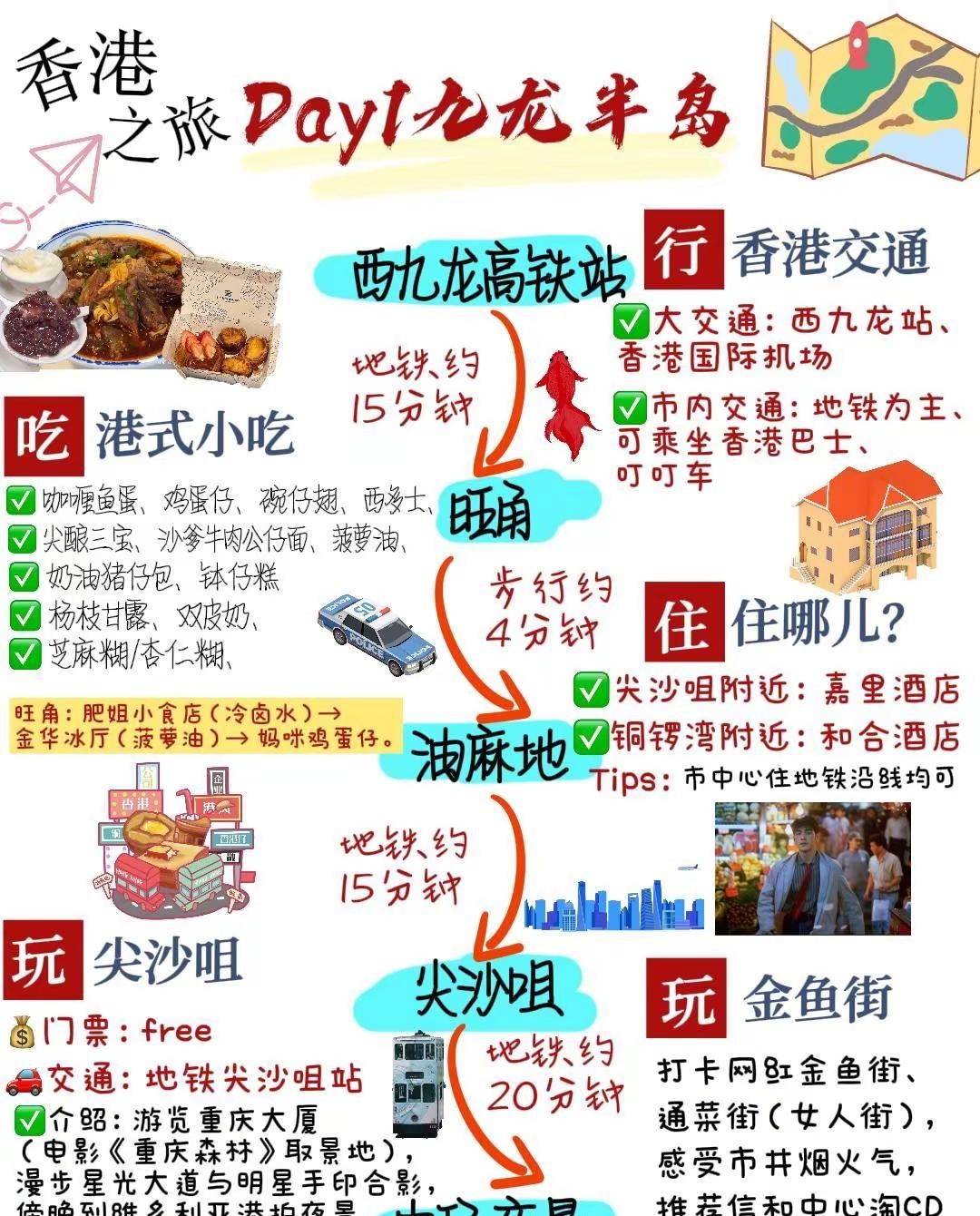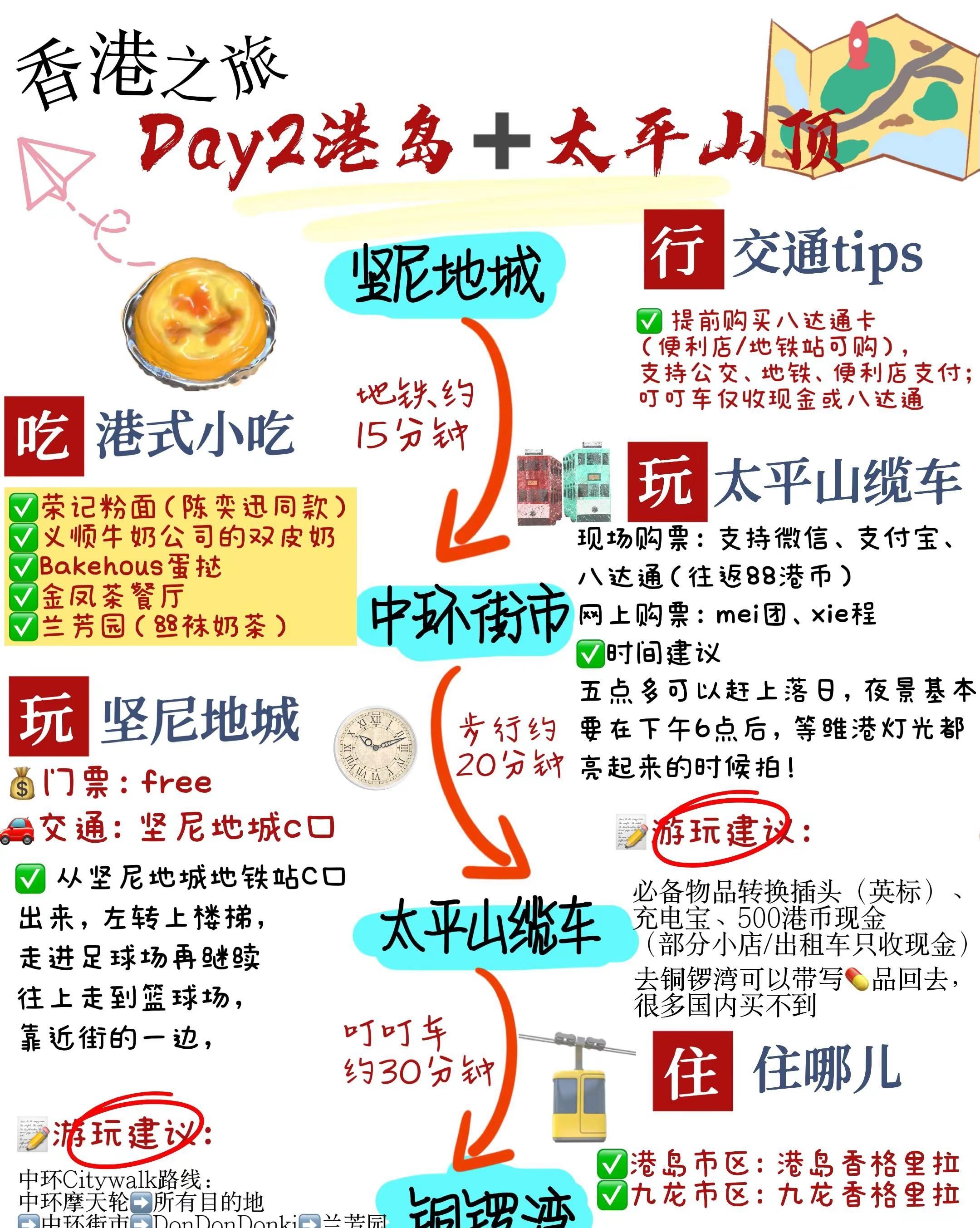 刚回来!这篇香港亲子游玩攻略一定看完。香港攻略|香港游玩路线|香港旅游“东方之珠,璀璨香江”百年风云变幻,中西交融魅力之都来这座动感之城感受霓虹繁华与市井烟火气·旺角8:30-9:30漫步旺角古老建筑,浓郁的人文风情扑面而来~很有街市气息好吃好逛.尖沙咀10:30-12:00沿着星光大道与维港合影打卡成功人士超多海景打卡机位随手一拍都是大片.油麻地(警署)9:30-10:30网红打卡宝藏地港片迷必去满满回忆杀古老的警察局之一白天人会比较多哦.坚尼地城13:30-14:30车水马龙 楼宇相间路的尽头就是海海边咖啡厅喝杯咖啡配上美景绝了!.中环摩天轮12:30-13:30HK$20能坐3圈性价比高在摩天轮上俯瞰整个维港简直不要太美巨巨出片.叮叮车15:30-16:30路线1:湾仔——鰂鱼涌(怪兽大厦)路线2:中环——坚尼地城是香港zui具有代表性的交通工具-美食茶餐厅丝袜奶茶、菠萝油、西多士、餐蛋面、干炒牛河烧腊深井烧鹅、蜜汁叉烧、脆皮烧肉街头小吃鱼蛋、鸡蛋仔、格仔饼、碗仔翅、车仔面甜品杨枝甘露、双皮奶、姜汁撞奶、芒果糯米糍(部分老店只收现金,备500HKD零钱)·住宿尖沙咀:交通枢纽铜锣湾:购物天堂中环/上环:近PMQ元创方荃湾/青衣:适合迪士尼游玩#香港 #香港攻略 #酒店攻略 #干货分享