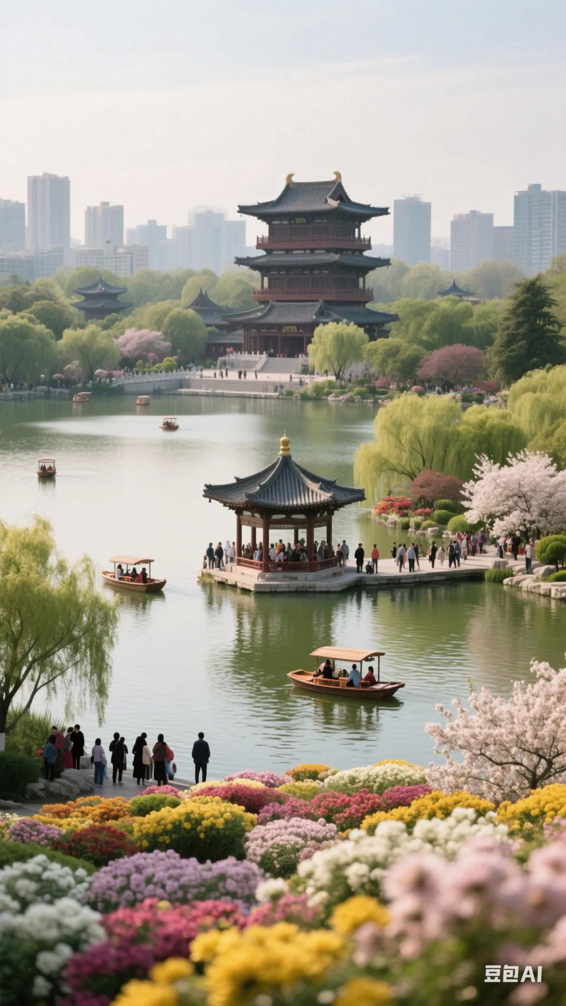 兴庆宫公园:唐代兴庆宫遗址上修建的城市公园,占地738亩,湖面150亩。园内保留了沉香亭、南薰阁等仿唐建筑,重现唐玄宗与杨贵妃的浪漫故事。春季花卉展吸引众多游客,夏季可泛舟湖上,感受“长在公园里的城市”的惬意。