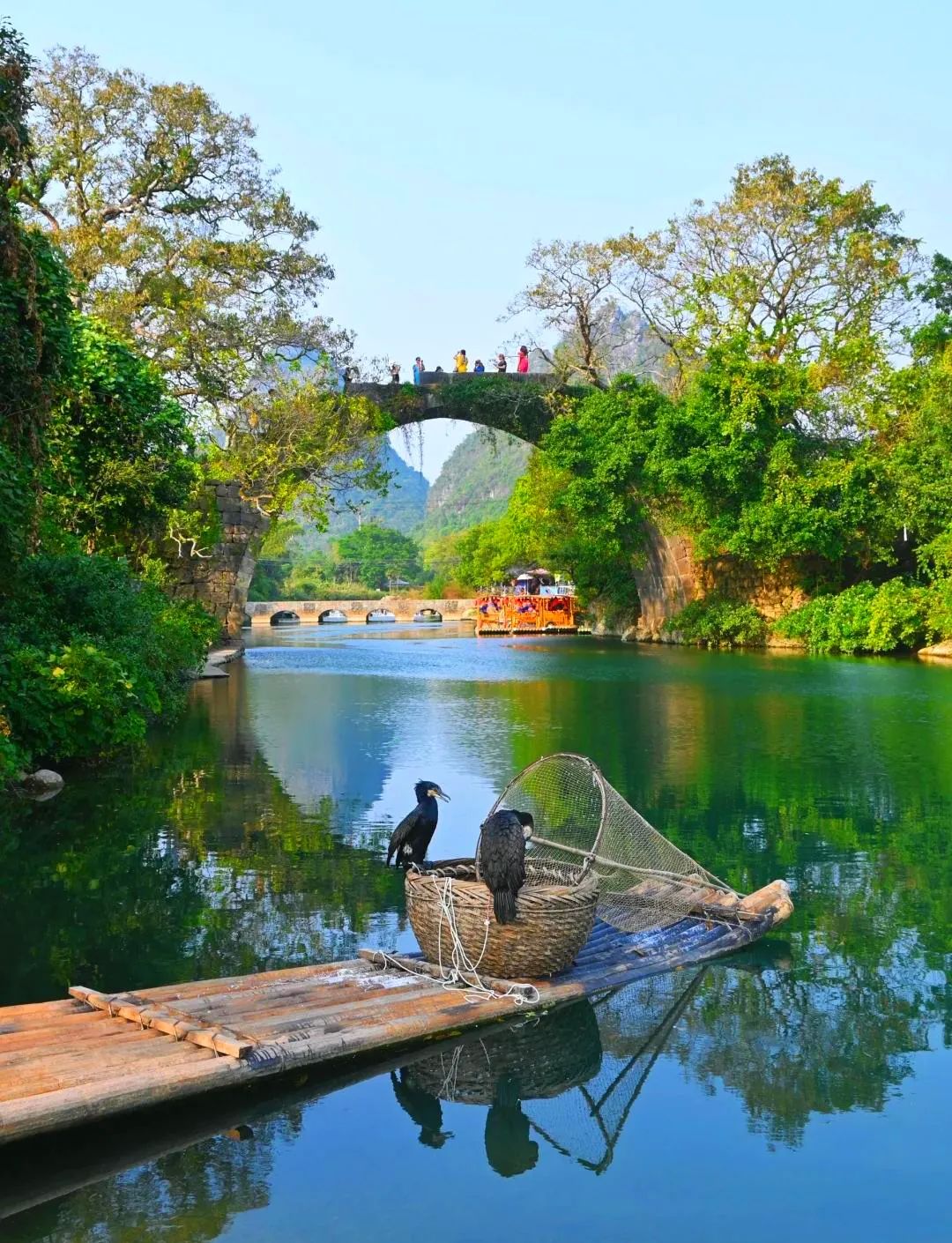 上午:前往遇龙河,乘坐竹筏漂流,感受“小小竹排江中游、巍巍青山两岸走”的美妙意境。记得提前在“遇龙河”微信公众号买票。如果带了儿童和老人,推荐去富力桥或者万景码头,这两个码头比较温和不刺激,景色也不错。