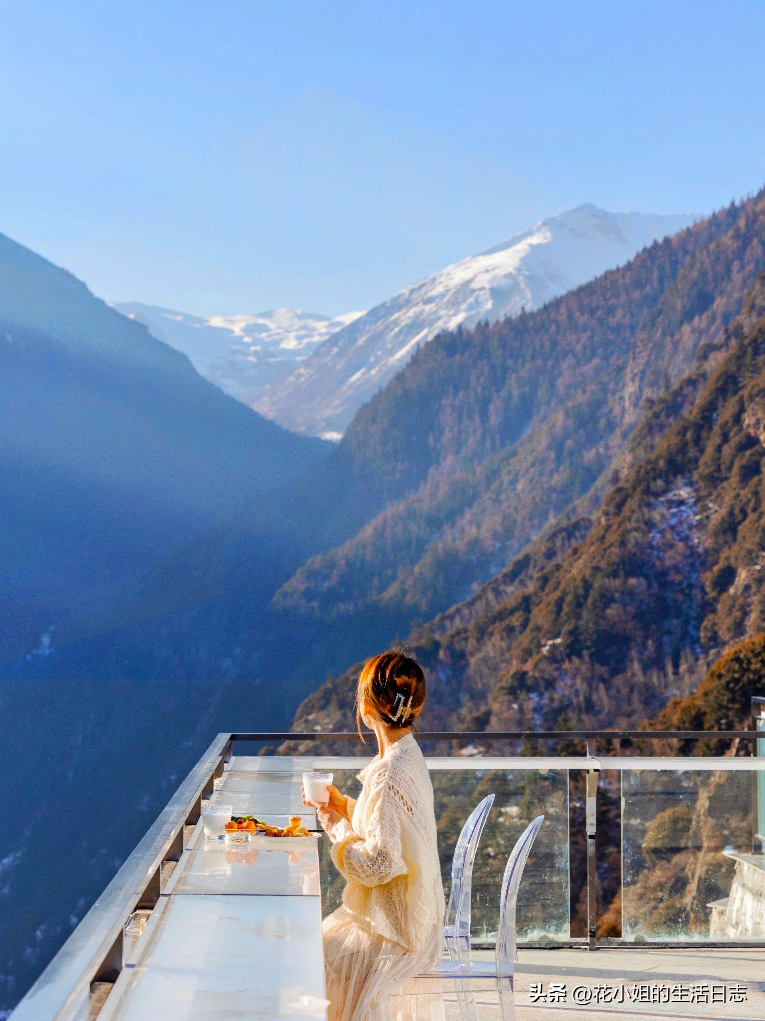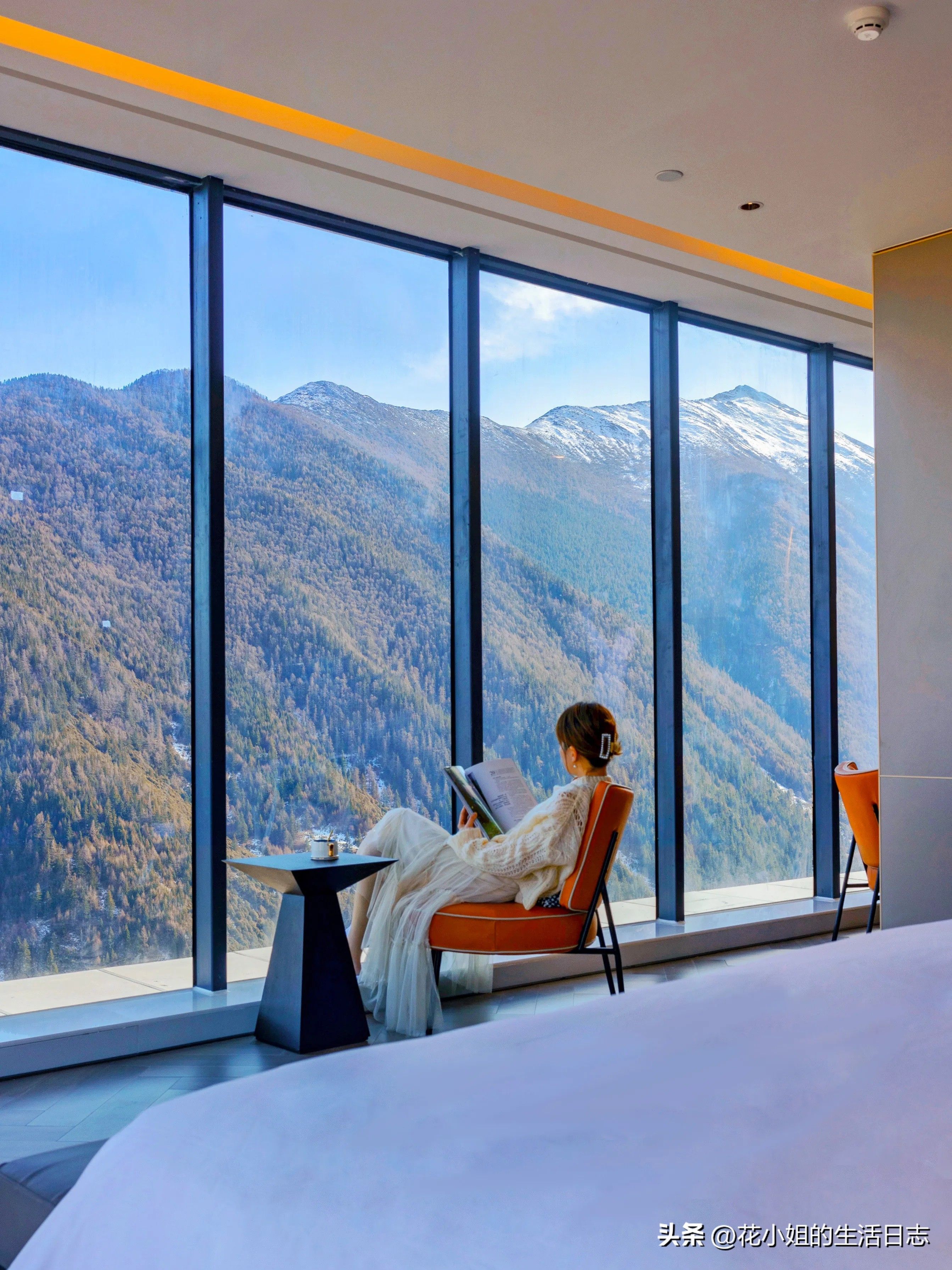 悬崖观景房:全景落地窗直面雪山,躺在被窝里看日照金山!全屋地暖+24h弥散式供氧系统,高原反应预警人群专属方案