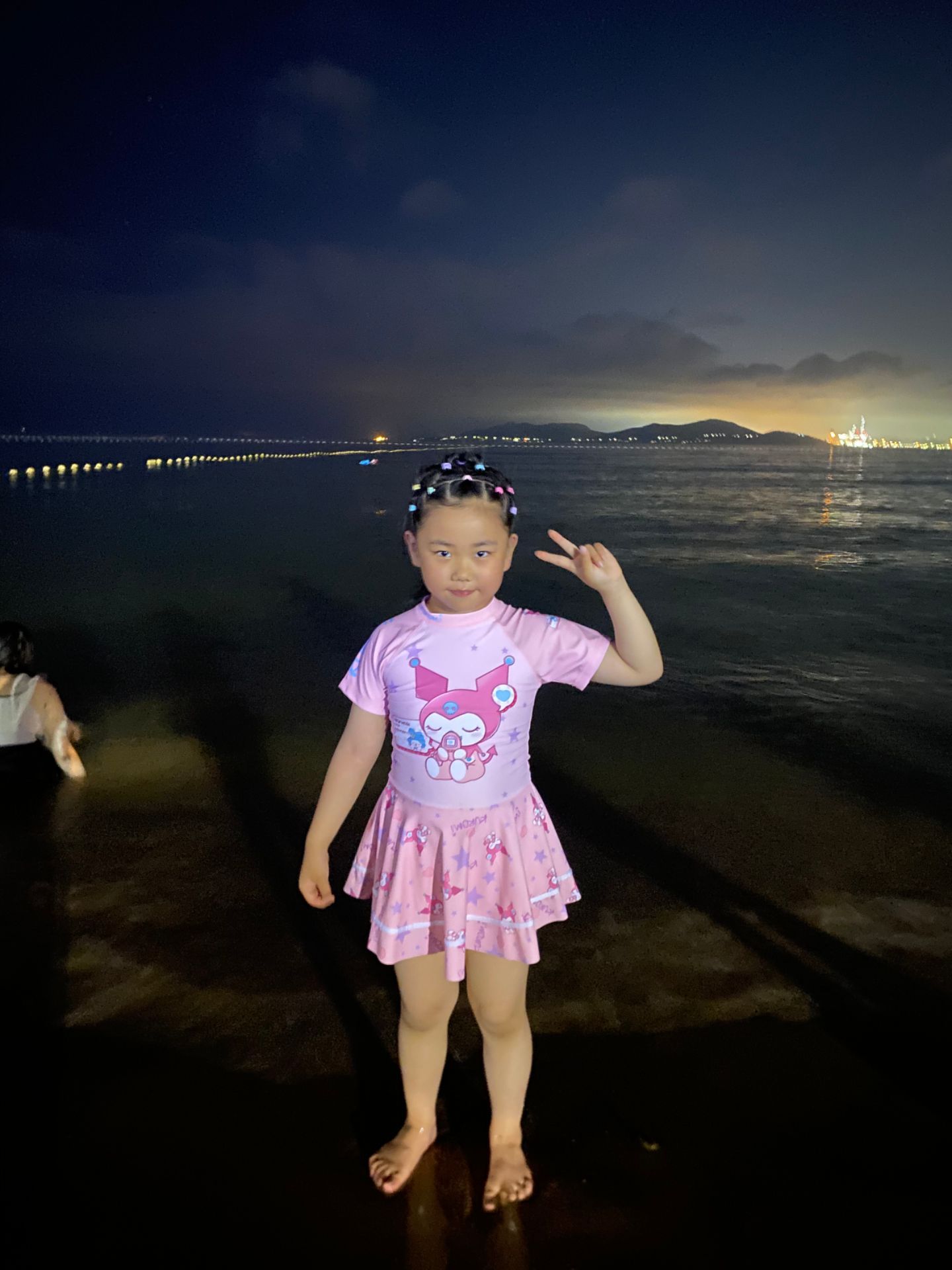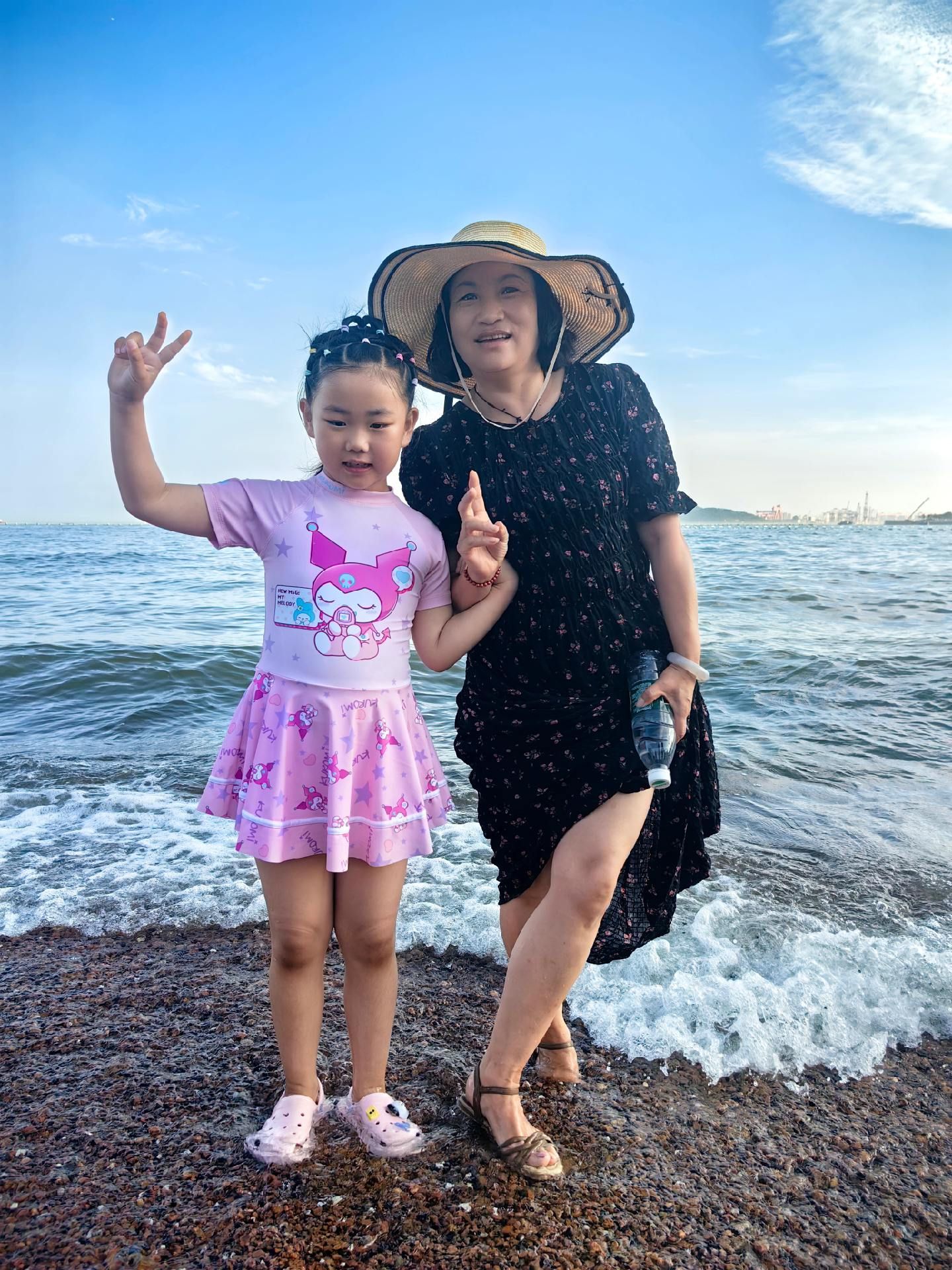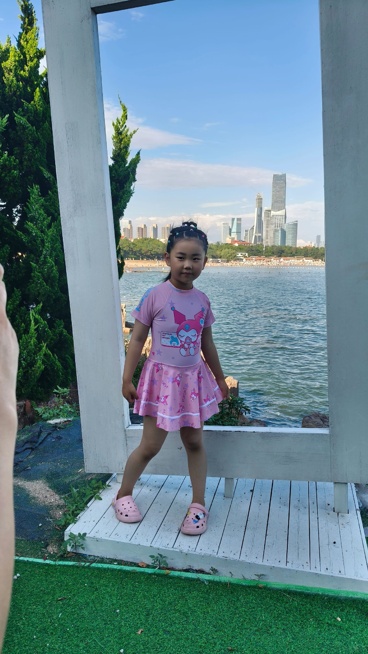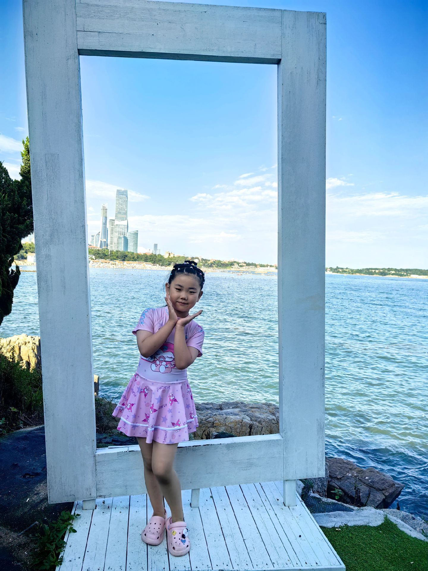 青岛的天气是闷热的,温差很小。你也是第一次经历这样的高温天气。在四天的时间里,你的姐姐为我们的到来做了精心的安排。我们品尝了青岛的美食,喝了正宗的青岛啤酒;游览了八大关,感受了人山人海的栈桥;去了海底世界,在方特游玩;登上了海上第一仙山-崂山。但对于你来说,最开心的就是在海边快乐的挖沙子,拣贝壳;这是你第一次接触和感受大海,你非常的兴奋,带上游泳圈,和大海进行了亲密接触,在海浪的拍打中尽情嬉戏,那一刻,我们都好像是大海的孩子。