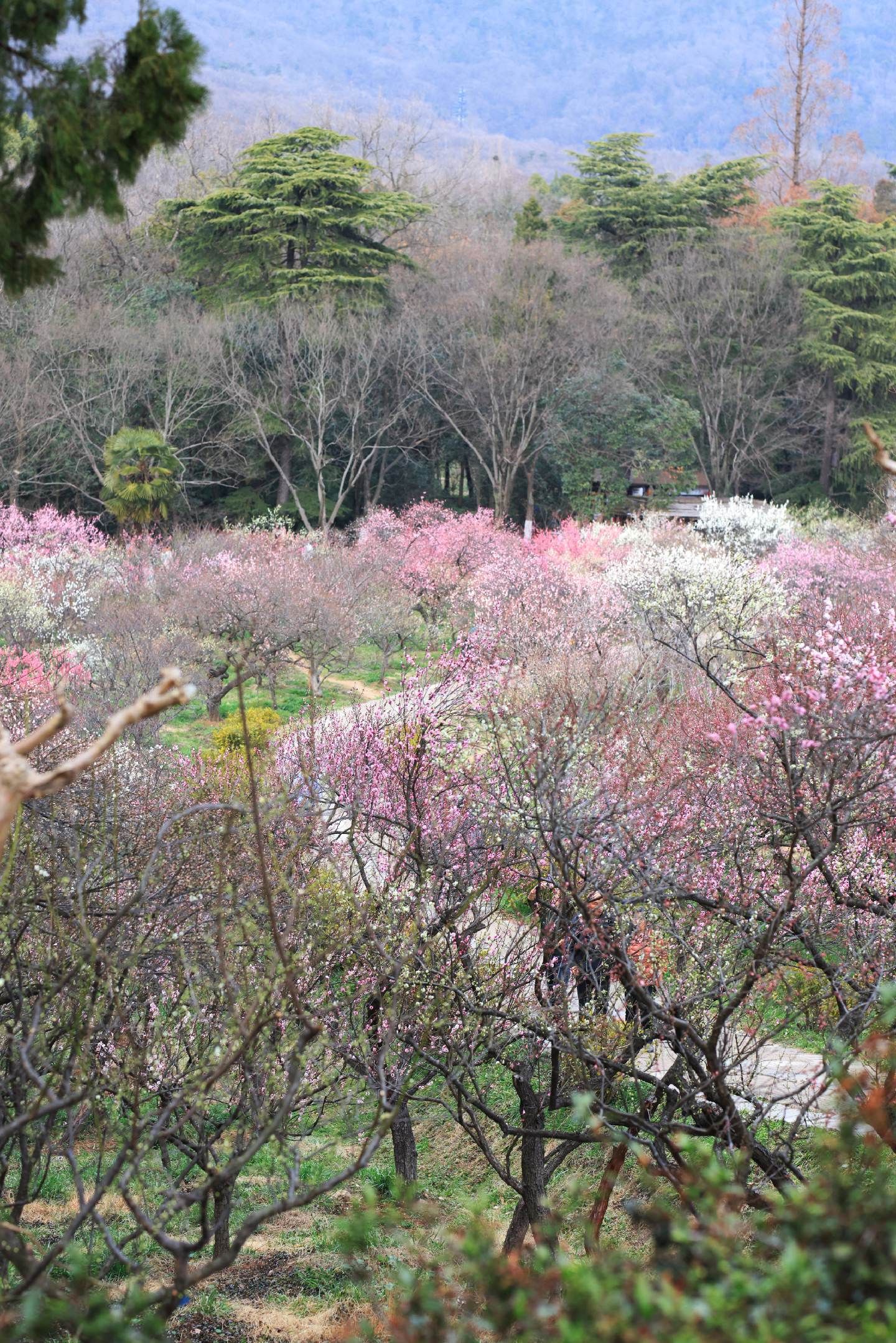 钟山风景区梅花山:梅花山上早花品种已全部绽放,由于经历罕见寒冬,今年梅花节花期比较集中,梅花山已是一片五彩斑斓的花海。
