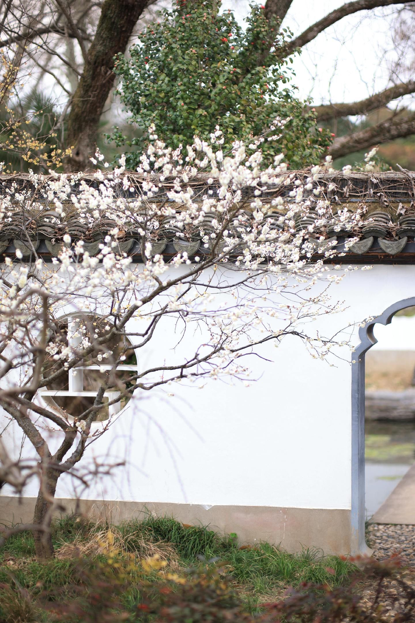 明孝陵红楼艺文苑,以植物造景为主,选取《红楼梦》有代表性的人物和景观点缀其间,将《红楼梦》所叙意境复现人间,亭台楼阁,窗户中点点梅花,想拍古风的一定不要错过。