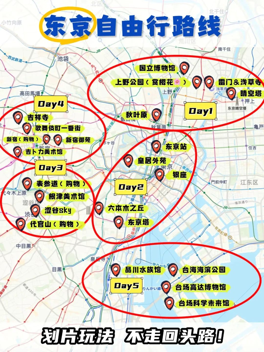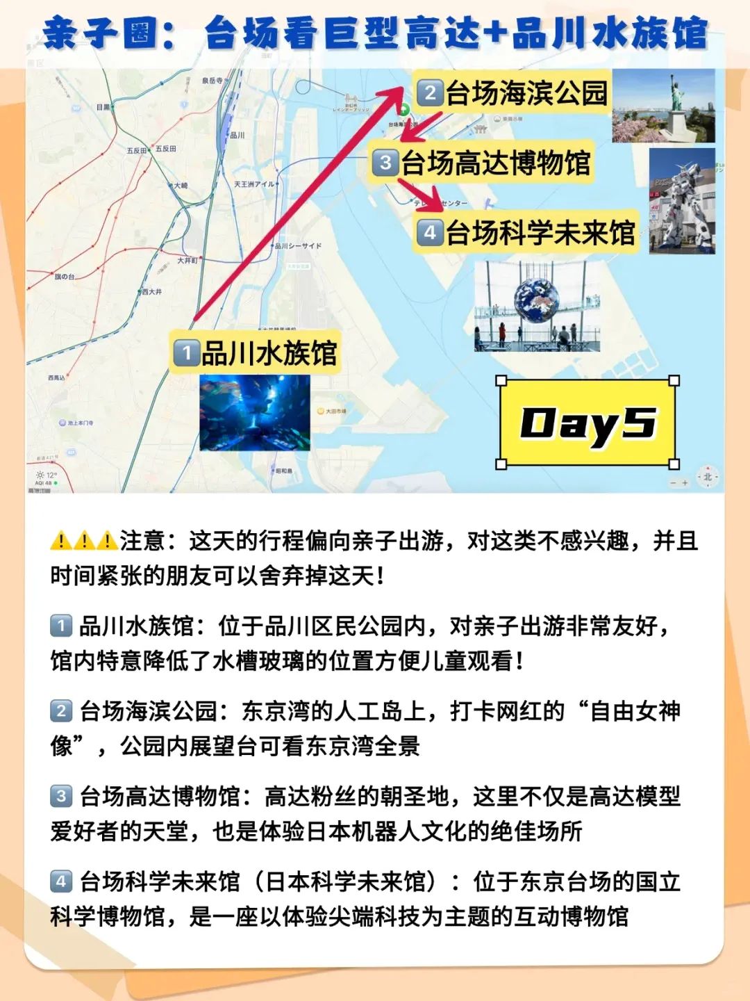 1. 时间不够怎么办:如果在东京的时间不足5天,对水族馆和高达模型不感兴趣的话,Day5的行程可以考虑舍弃。不喜欢购物逛街的小伙伴,Day3的行程也可以跳过,留着二刷东京时再去。