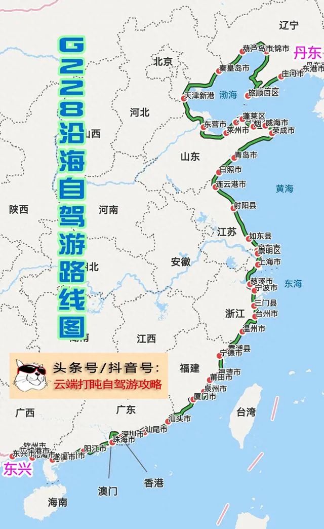 起点辽宁丹东市,终点广西东兴。
