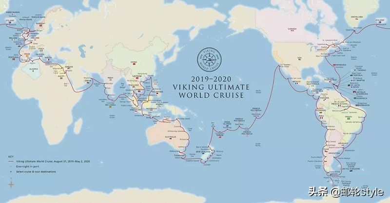 奢华邮轮品牌维京邮轮近期发布了一条史上最长的一条环球邮轮航线,航线时长持续245天!历时8个月。