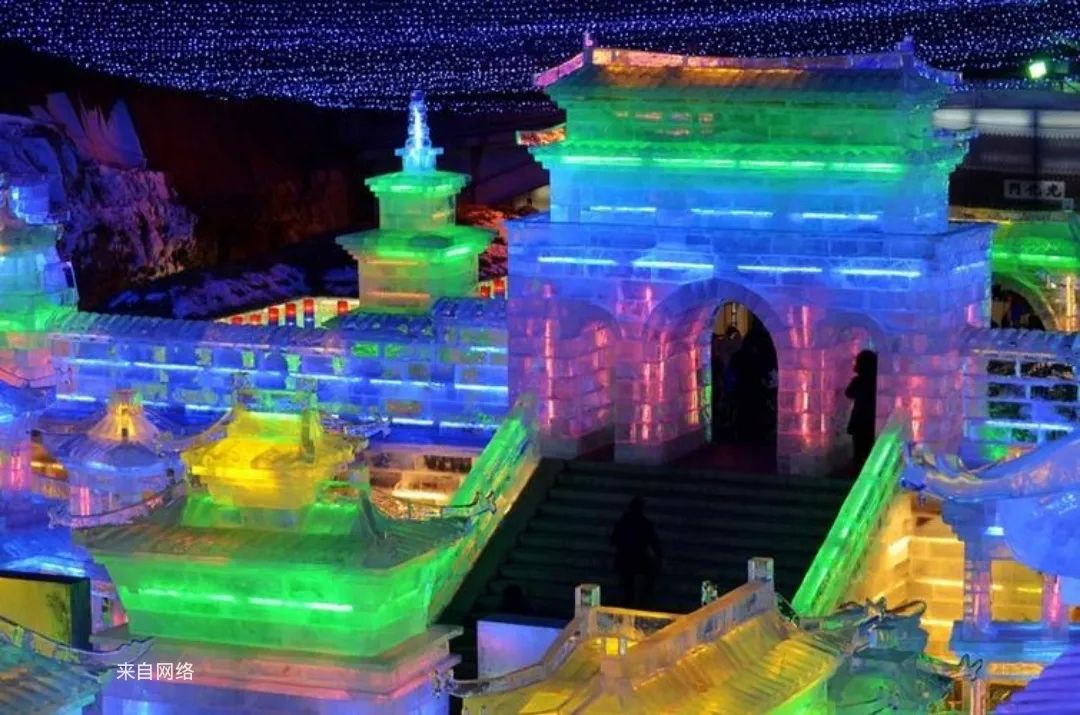 人们不仅可以在龙庆峡游山玩水,还能到此观冰赏灯。从1987年开始,龙庆峡每年都要举办冰灯节,位置就在水坝下方。冬季降临时,湖水便沿着近百米高的坝体表面凝结成冰瀑,冰清玉洁蔚为壮观。更有能工巧匠们用巨大的冰块雕琢出城堡楼宇、人物肖像以及花木鸟兽,它们的内部再装上彩灯,即是一片琼楼玉宇的仙境了。人们手握冰糖葫芦,穿梭在晶莹剔透的“长城”“故宫”中,自然会乐不可支妙不可言。