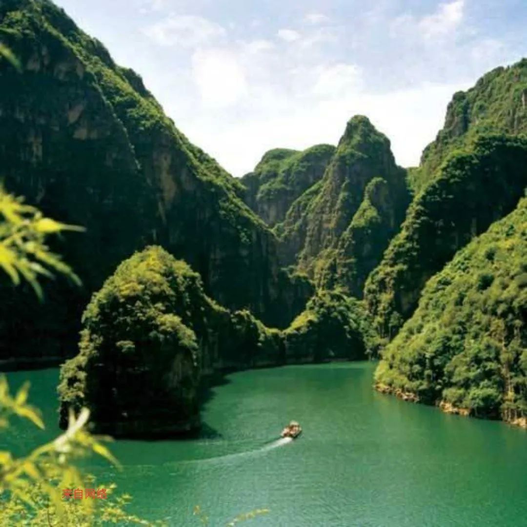 这是一条探入水库中的山脊,由于其状如一顶飘落水面的凤冠帽而得名。凤冠岛三面临湖,背连群山,更似曲项饮水的天鹅,它优雅的身姿像是在翩翩起舞,两翼轻抖群峰绵延,双足紧握镜泊翠屏,其势欲飞,其情若神,人们也似能随它扶摇直上九重天,一览众山小如垒,遍看群谷长似带,难怪凤冠岛成为了龙庆峡标志性的景点。