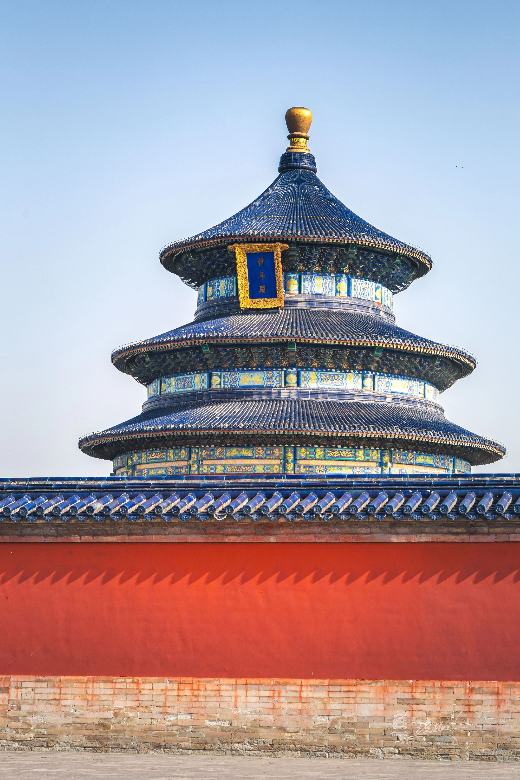 祈年殿侧面背面人相对较少,运用长焦和仰拍避开人群;另外祈年门外的红墙相当冷门,95%游客不会来这里。