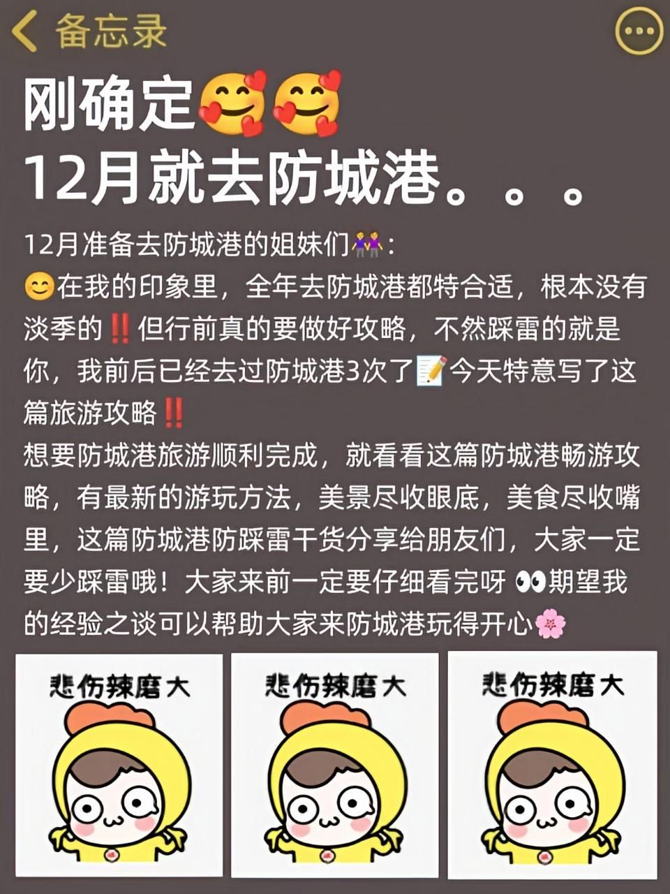刚确定12月就去防城港。。。在我的印象里,全年去防城港都特合适,根本没有淡季的但行前真的要做好攻略,不然踩雷的就是你我前后已经去过防城港3次了今天特意写了这篇旅游攻略大家来前一定要仔细看完呀 期望我的经验之谈可以帮助大家来防城港玩得开心