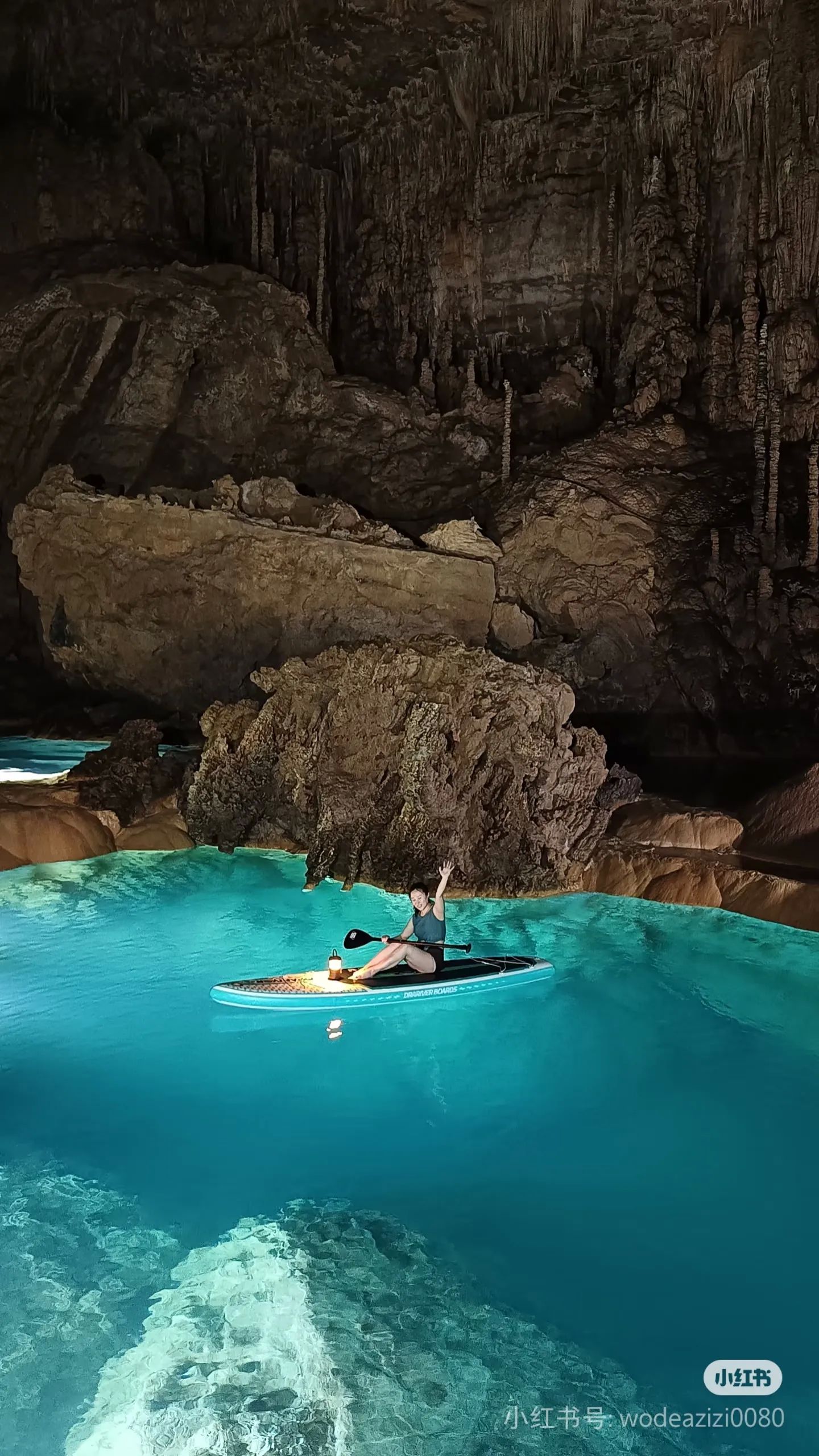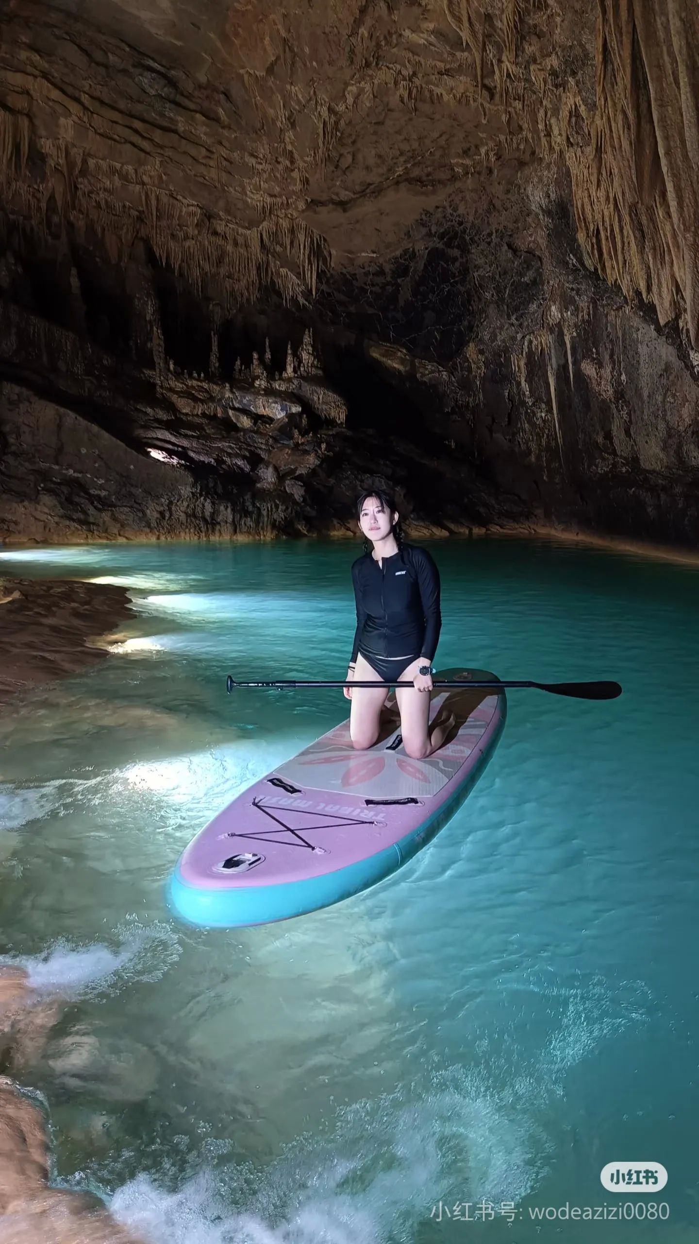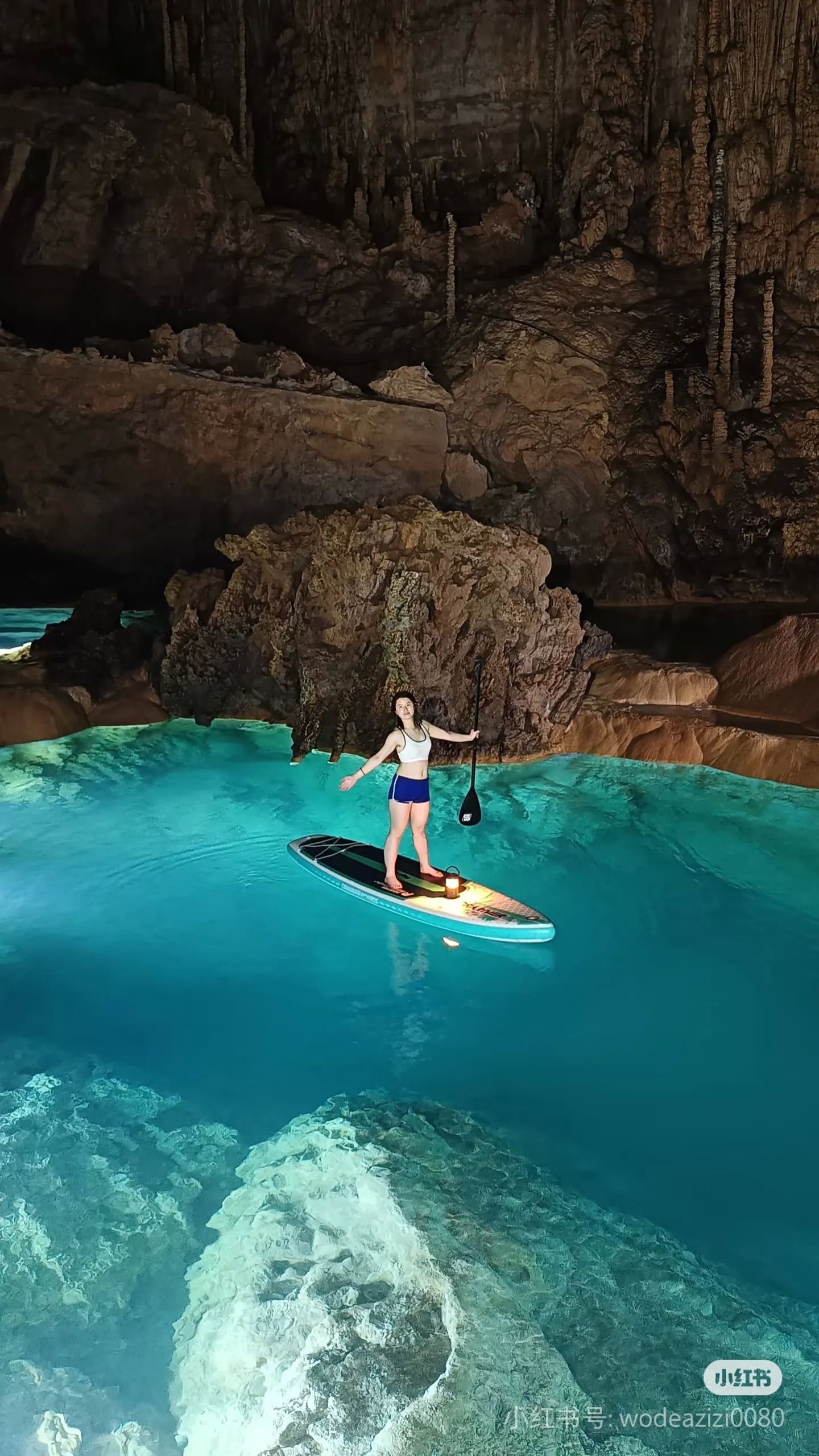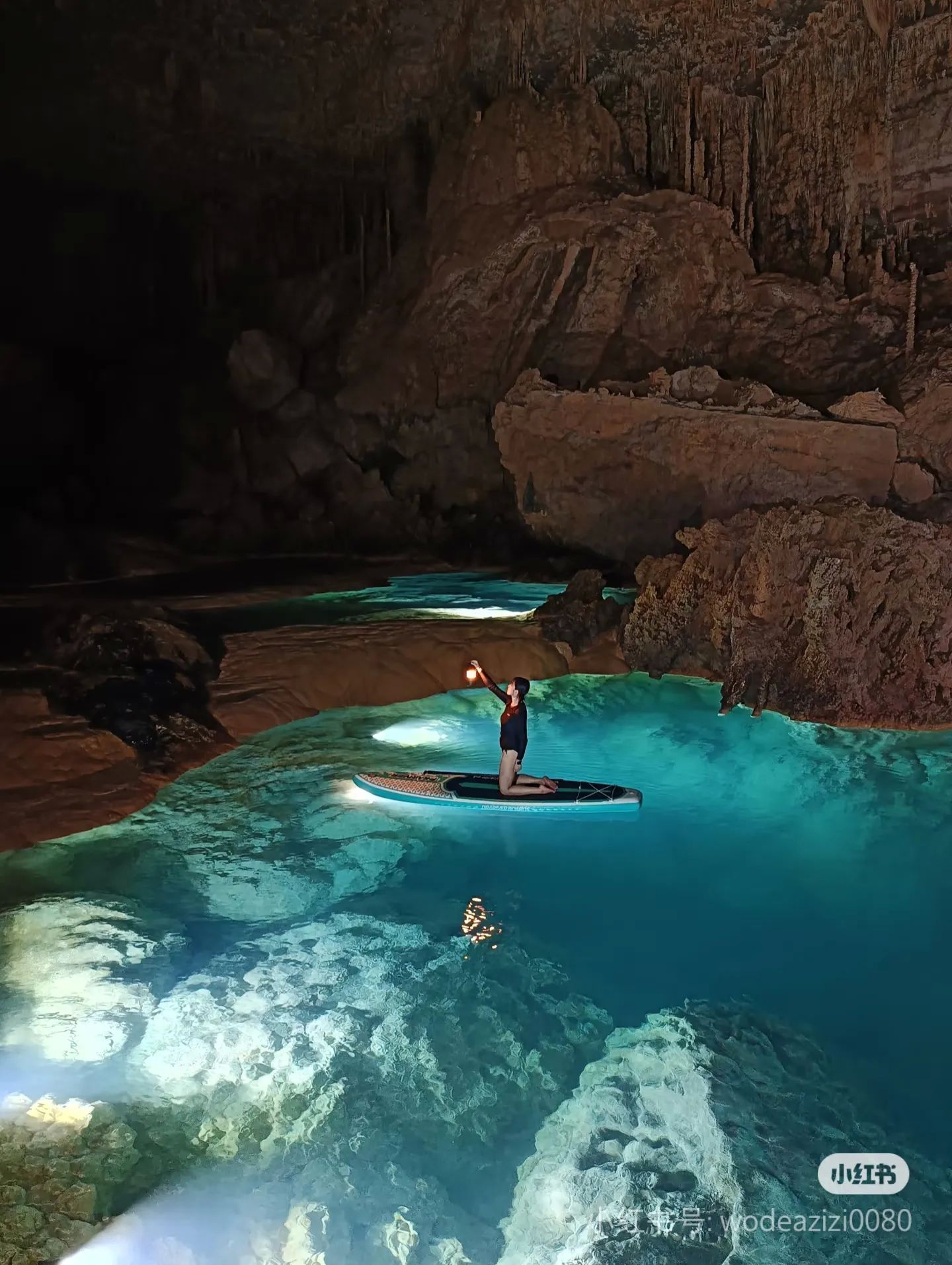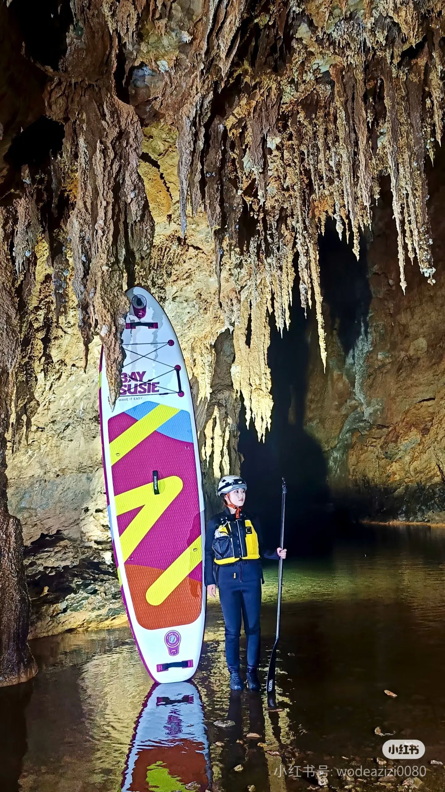 桨板在地下水道漂浮,划着划着就进了“溶洞仙境”,真的像误闯秘境的探险家