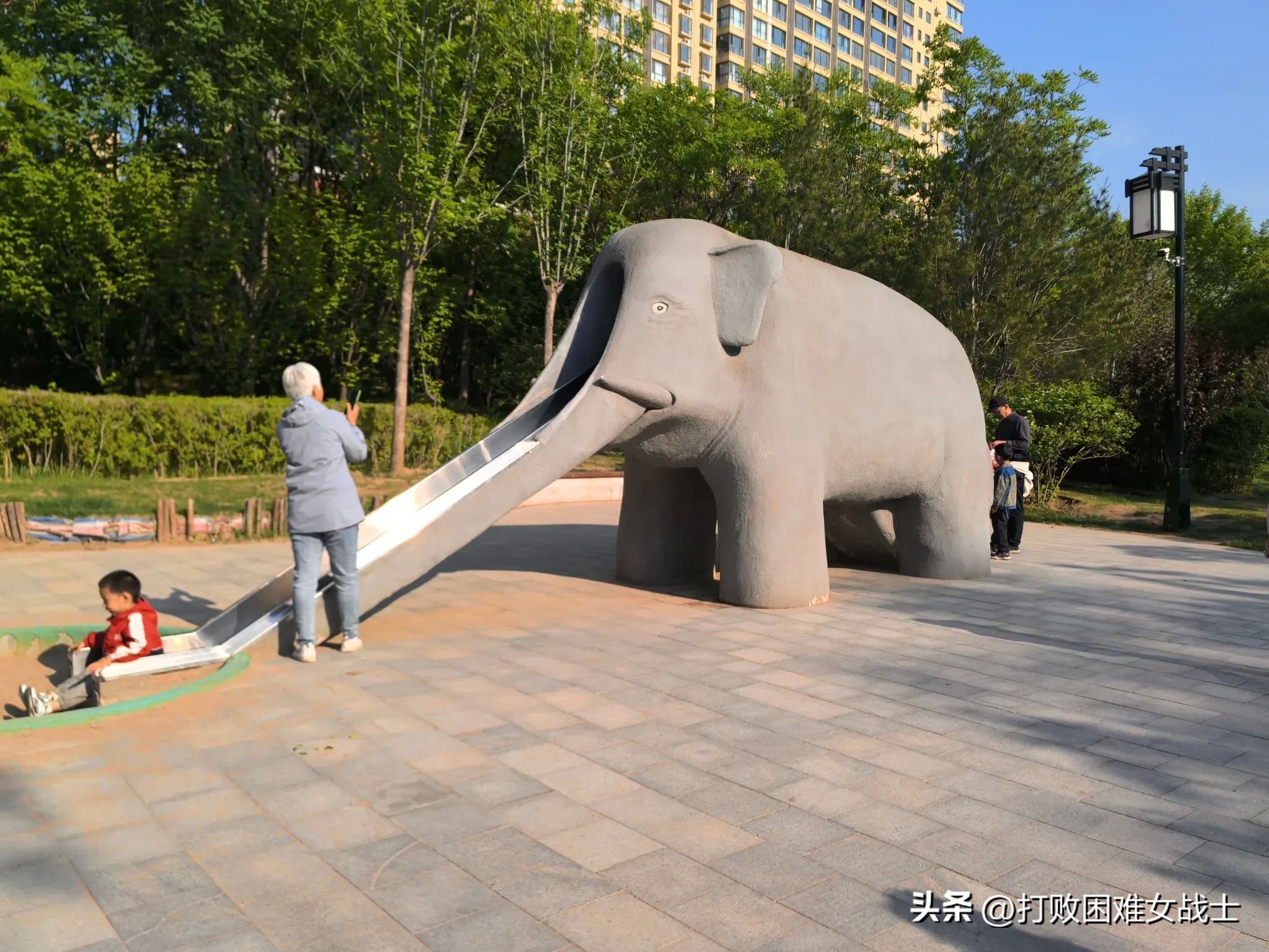 观澜阁对面塑胶跑道旁边是迎泽公园重要地标建筑之一的大象滑梯(图3),修建于70年代,至今已有50余年,承载了数代人童年的欢乐回忆。