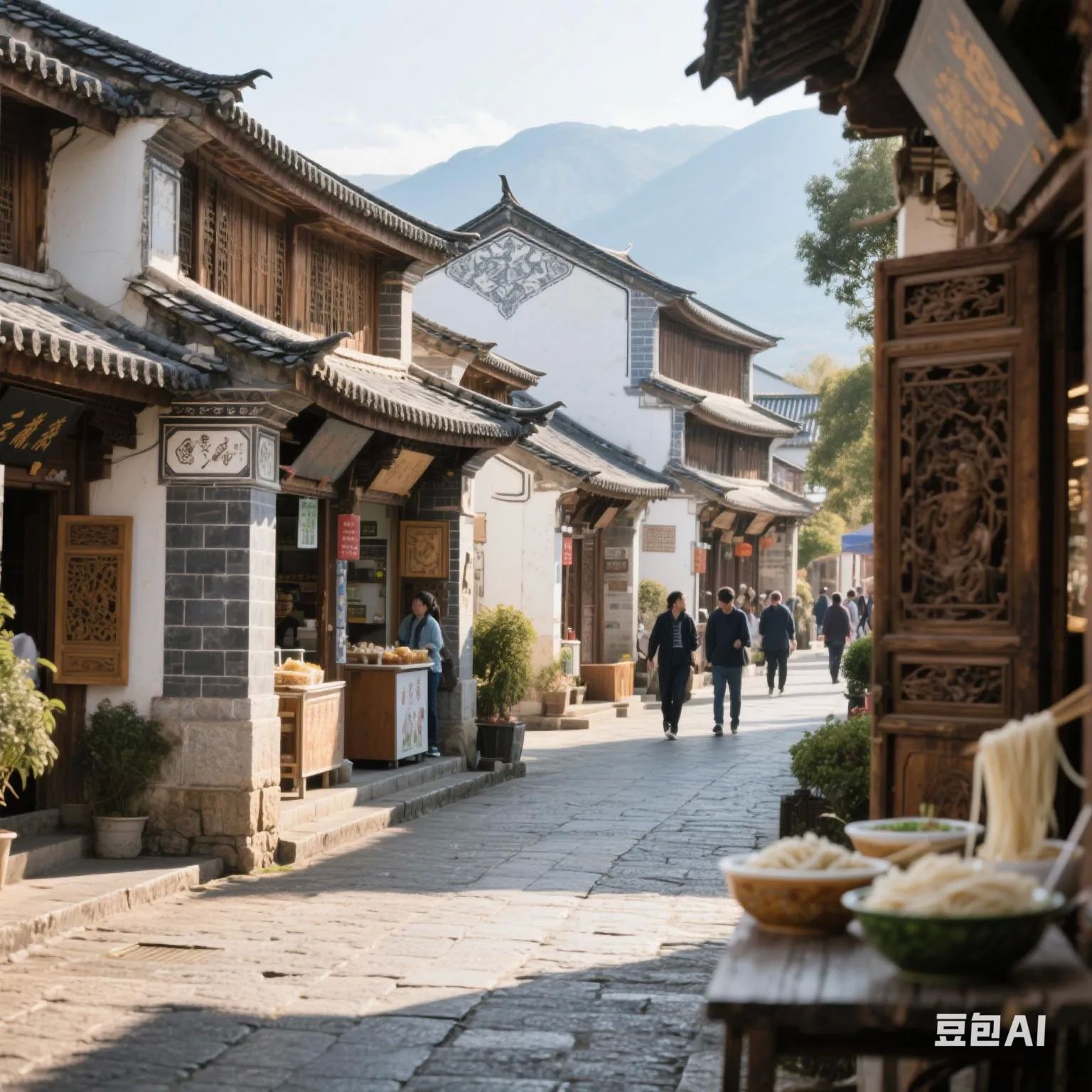 3. 喜洲古镇:保存着众多白族传统民居建筑群,以四方街为中心,还有喜洲粑粑等美食。