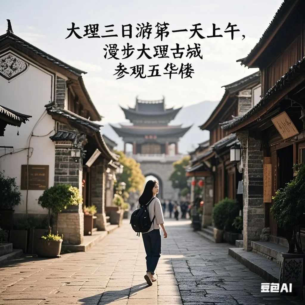 - 上午:抵达大理后,前往大理古城,漫步古城街道,参观五华楼等景点。