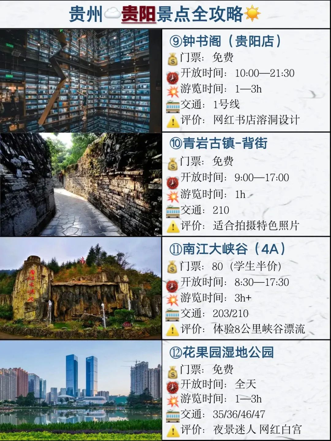 若时间充裕,周边的天河潭、阳明洞、南江大峡谷、息烽集中营等地,也都值得花上一天时间细细游览,每一处都有其独特的历史故事与自然风光。