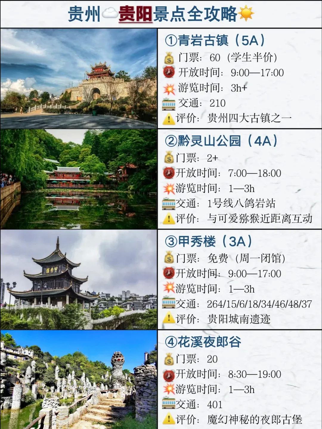 - 一日游:在甲秀楼感受建筑之美后,前往黔灵山公园亲近自然,最后在二七路夜市大快朵颐,品尝贵阳特色小吃,感受城市烟火气。
