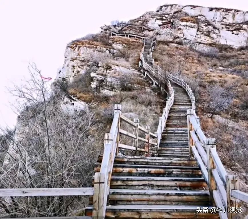 2:后亭栈道,位于石家庄市井陉县吴家窑乡,整个山头分东西两个栈道,一个处栈道大概1000多级台阶,两个栈道共3000多级台阶。