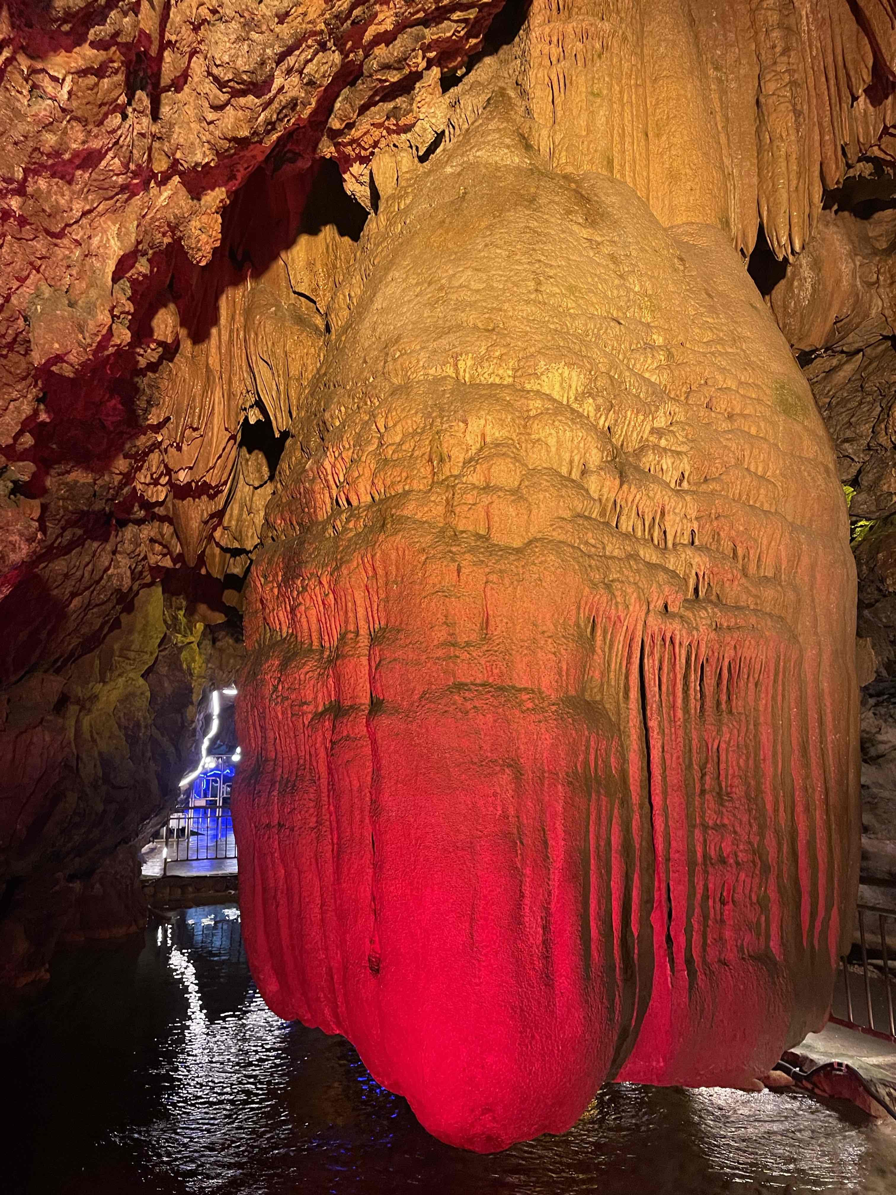 上游1/3乘船观光:泛舟地下河,欣赏“龙宫水府”等水景。