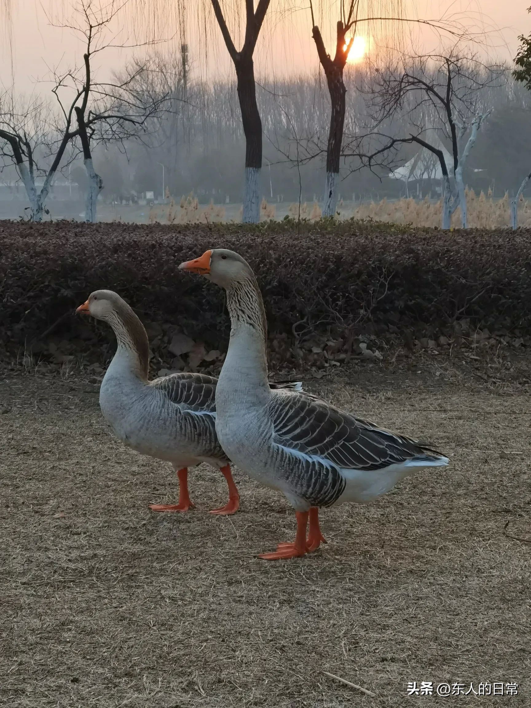 这里环境很好,有不少市民在晨练。能观赏日出,还可以近距离接触大雁。