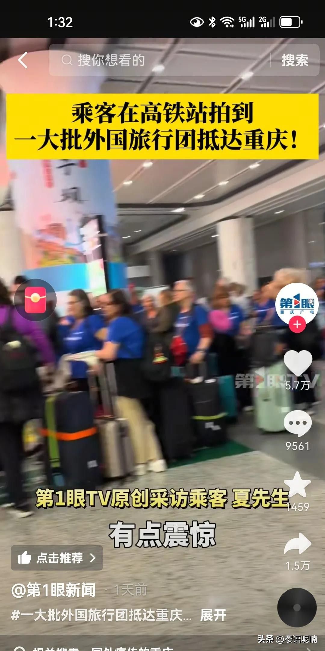最近来重庆的朋友们要注意啦!这座8D魔幻都市正迎来前所未有的国际游客潮。从江北机场到轨道交通,从洪崖洞到十八梯,随处可见金发碧眼的外国游客举着相机打卡。就连李子坝轻轨穿楼这样的经典景点,现在想拍张照都得排队等候呢!