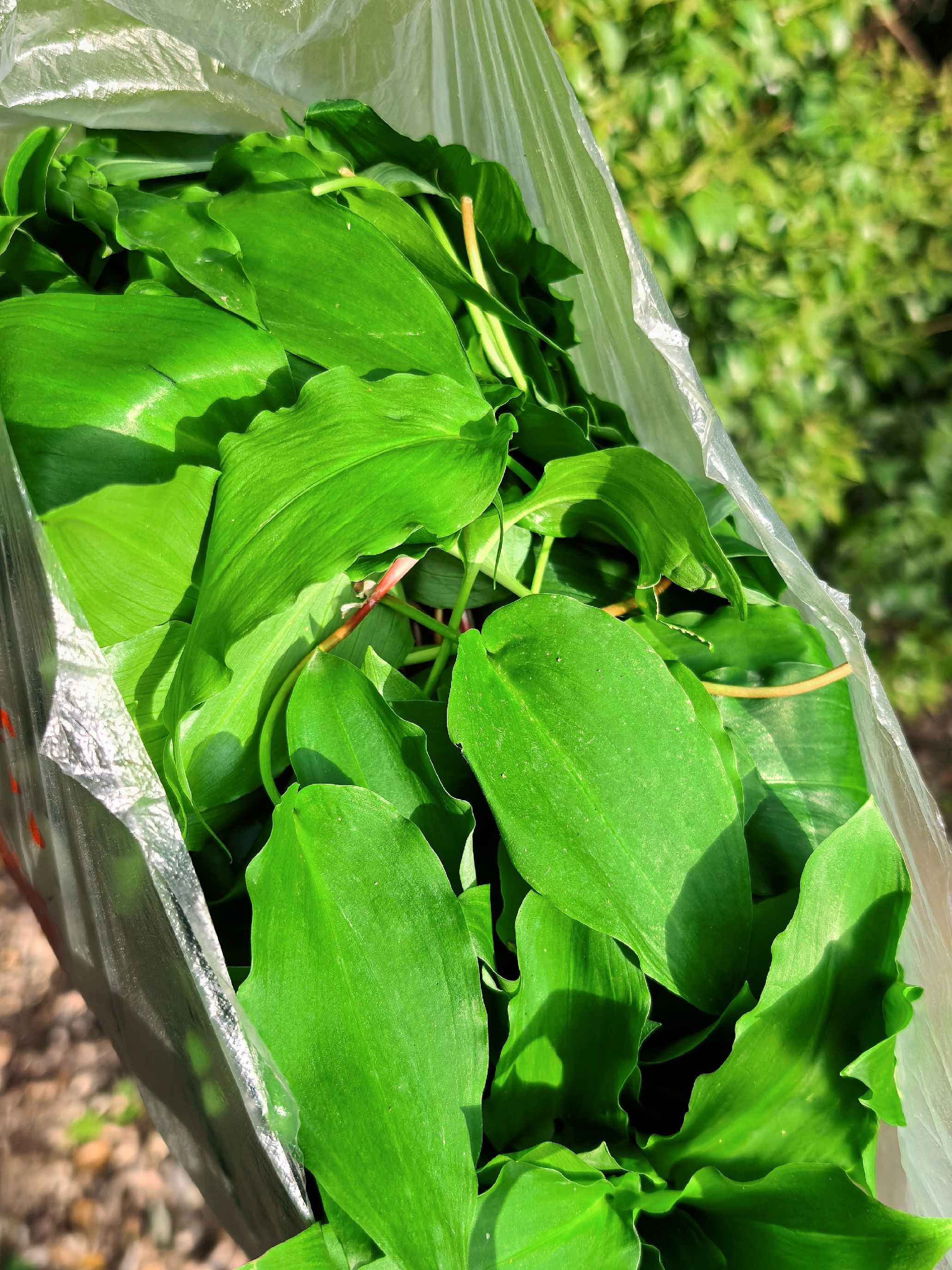路餐结束后,大家就分散开来,各自选了一块地方,开始扯鹿耳韭,这是一个快乐漫长的过程,看着满山遍野的鹿耳韭,只选大的扯,就一直扯一直扯。感谢队友给了橡筋圈,扯够一把就捆起来,到15时差不多有一袋子了,开始下山。
