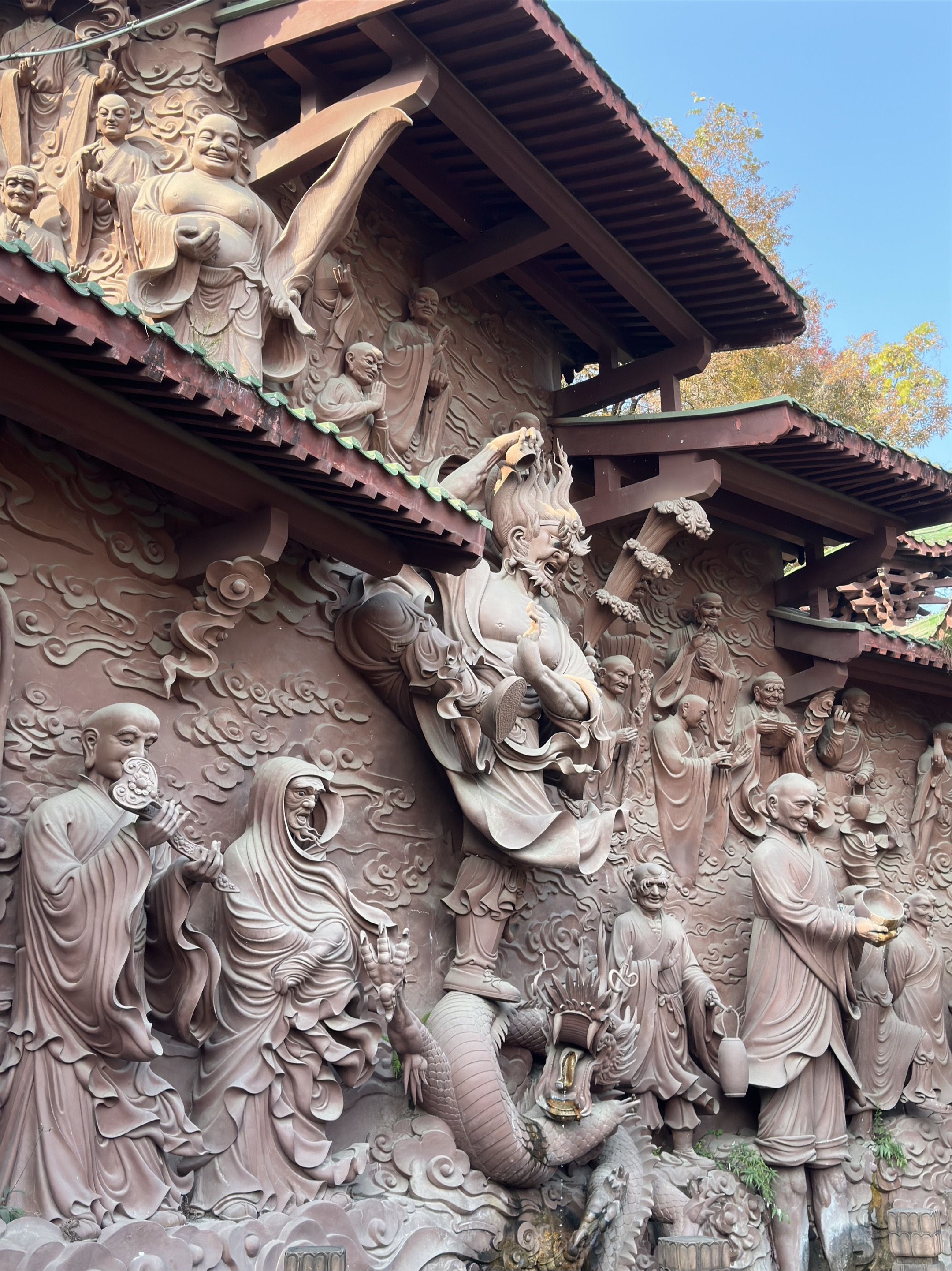 始建于唐代,坐落于绵阳市城西涪江右岸的塔子山风景区,自古以龙泉圣水著名,最初名“甘泉寺”,后更名为“圣水寺”,廊内有500余尊栩栩如生的佛教众生雕刻,飞禽走兽、人物形态各异,都是由雕塑大师李能胜花费了整整10年时间完成的