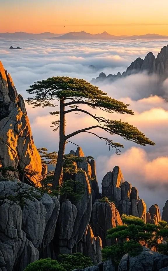 -自然奇观:82座山峰错落有致,迎客松姿态遒劲,云海翻涌时如入仙境。徐霞客曾赞:“登黄山,天下无山”。