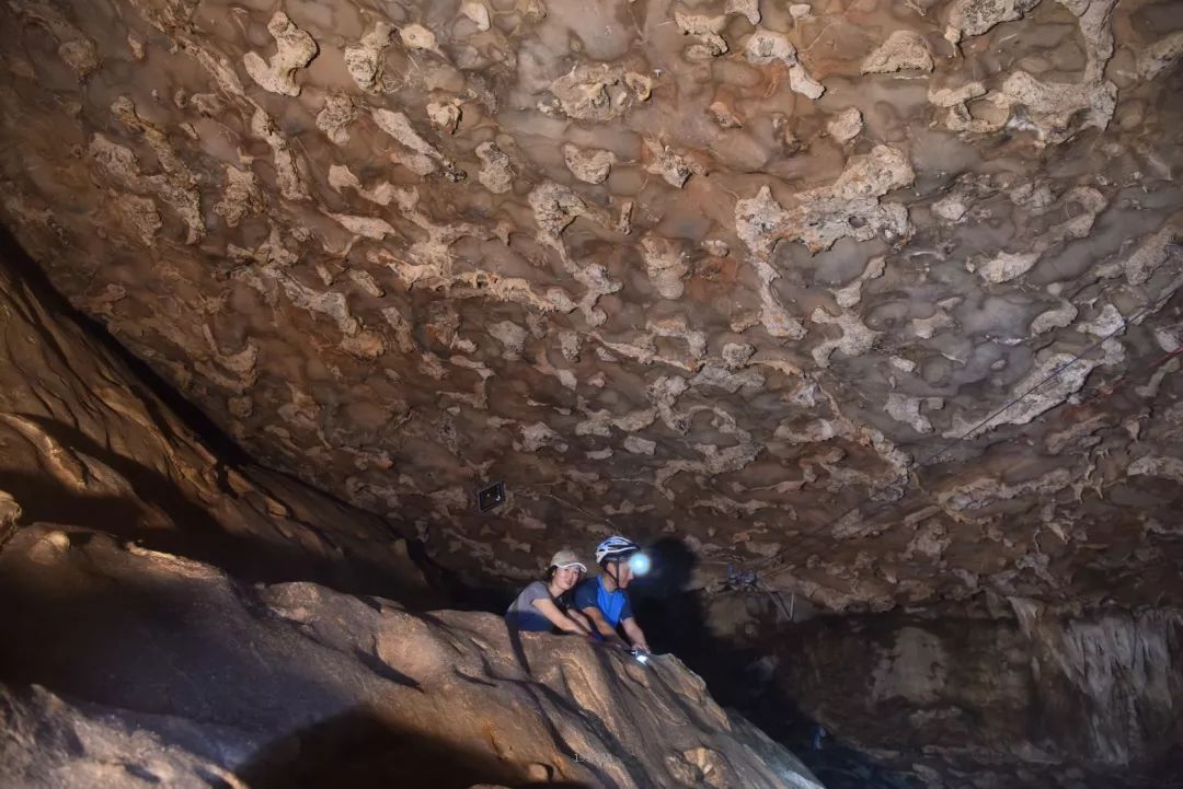 上洞特别隐密,没有当地朋友指点,很难找到入口,距离地面约3米高有一狭窄甬道,只能一人侧身穿过,不到5米,豁然开朗,一个巨大的洞穴展现在眼前,很和谐的情景。