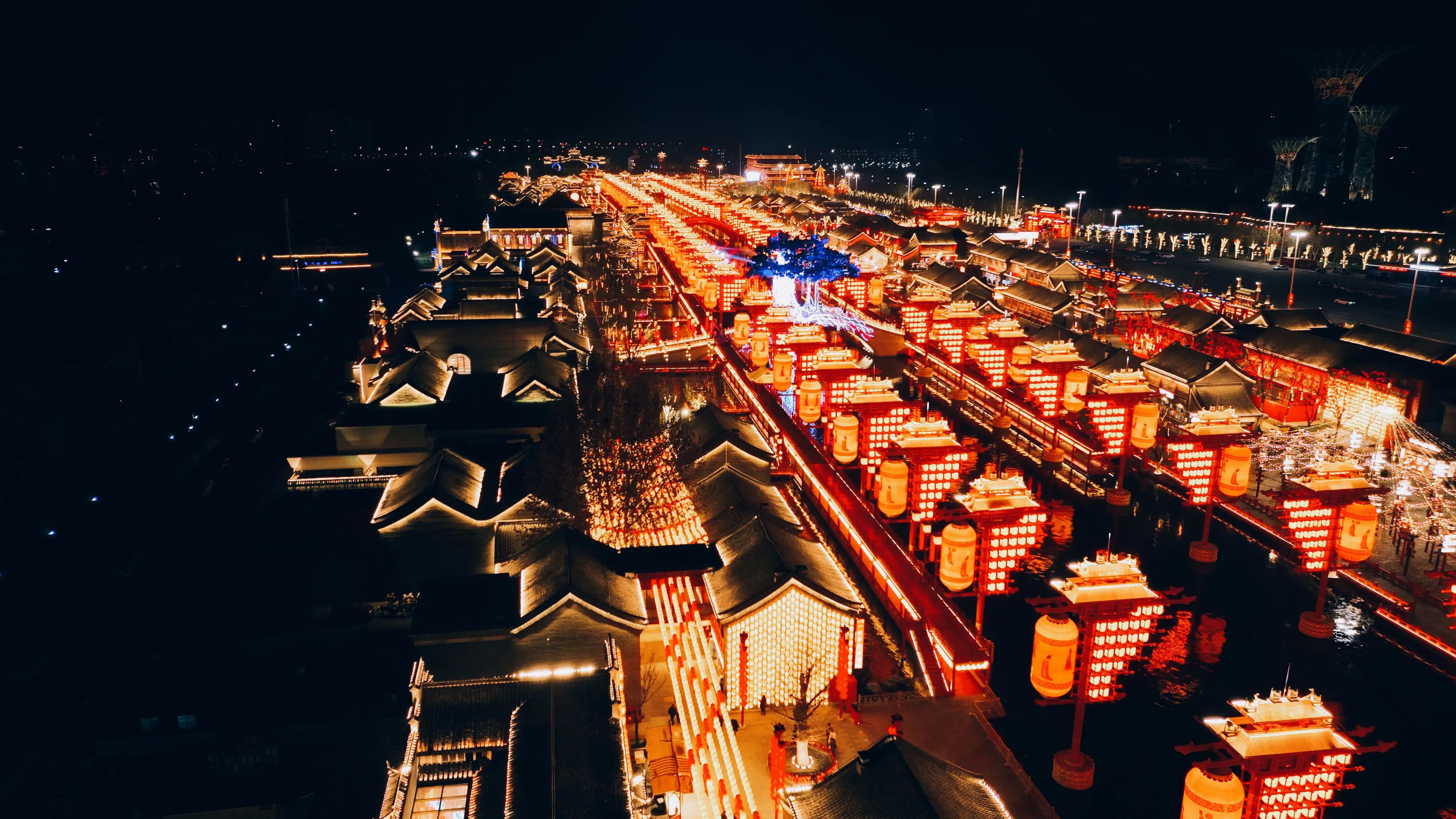 玩法:沉浸式唐风表演(如《唐王东征》实景剧)、水上市集、糖葫芦大叔互动,夜晚灯光秀和花船巡游。